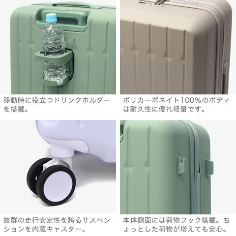| 旅をもっと快適に! 大人可愛いスーツケース ドリンクホルダーや拡張機能のついた多機能なキャリーケース。こちらは、66~76Lへ拡張可能なサイズです。折り畳み式のドリンクホルダーは、水筒や折り畳み傘が収納可能で、移動時に両手が空いて楽々快適♪サスペンションを内蔵したキャスターは、凹凸の多い地面でも衝撃を吸収し滑らかな走行を実現。パステルカラーのかわいいデザインで、旅行や出張をおしゃれに彩ってくれます。 |