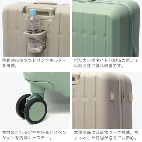 | パステルカラーが可愛い 多機能キャリーケース ドリンクホルダーや拡張機能のついた多機能なキャリーケース。こちらは、99~112Lへ拡張可能な大型サイズです。折り畳み式のドリンクホルダーは、水筒や折り畳み傘が収納可能で、移動時に両手が空いて楽々快適♪サスペンションを内蔵したキャスターは、凹凸の多い地面でも衝撃を吸収し滑らかな走行を実現。パステルカラーのかわいいデザインで、旅行や出張をおしゃれに彩ってくれます。 |