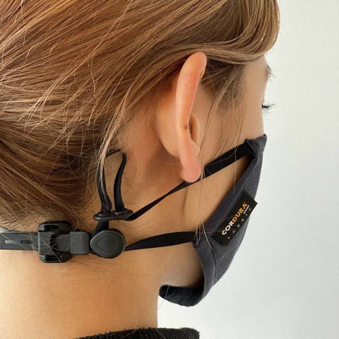 付属のアジャスターパーツを取り付けることで、ゴム紐による耳の擦れを防ぎ、痛みのストレスがなく使用できるもポイントです。