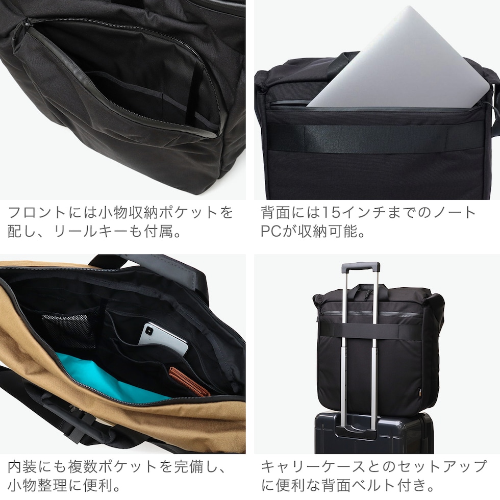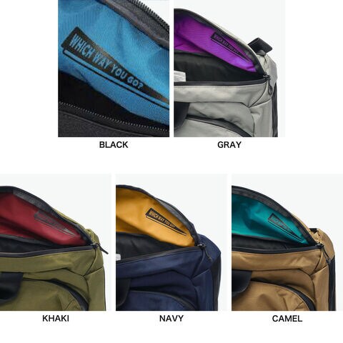 | スクエアフォルムが 印象的な多機能バッグ デザインと機能性を兼備した『STANDARD/スタンダード』シリーズの2WAYバッグ。オリジナルの優れた透湿防水性を持つナイロン素材「CORDURA FINE TEX」を採用。「WHICH WAY YOU GO?/今日はどっちでいく?」というメッセージが込められ内装にさりげなくプリントされています。B4サイズに対応し、たっぷりの荷物を収納できる大容量デザインです。 |