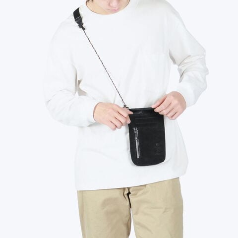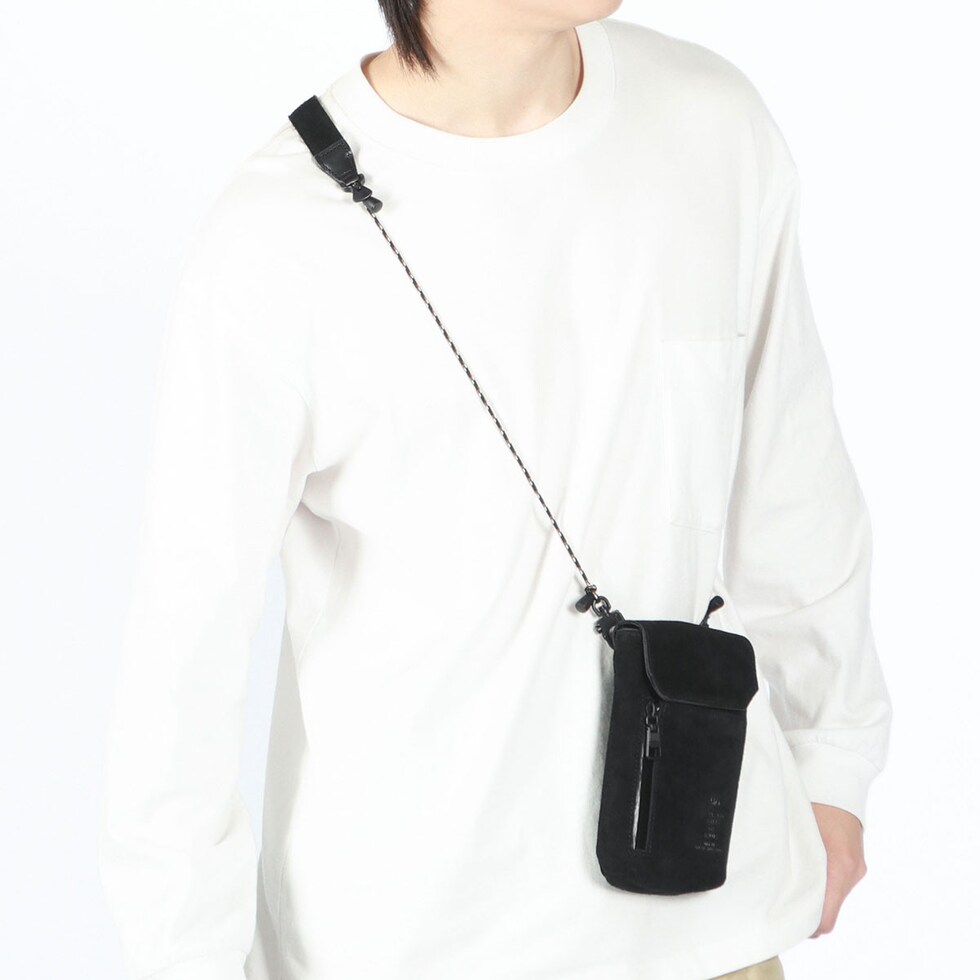 | スエードの素材感が 存在感を放つショルダー 防水糅し(防水材を芯通し)を施し、スエードながら防水性に優れたレザーショルダーバッグ。ポケット代わりに小物類をすっきりまとめられるコンパクトなサイジングが魅力です。ワンアクションで長さの調整が出来るバーツのついたドローコードはAS20Vオリジナル。肩部分がスエードバーツになっているのも嬉しいポイントです。 |