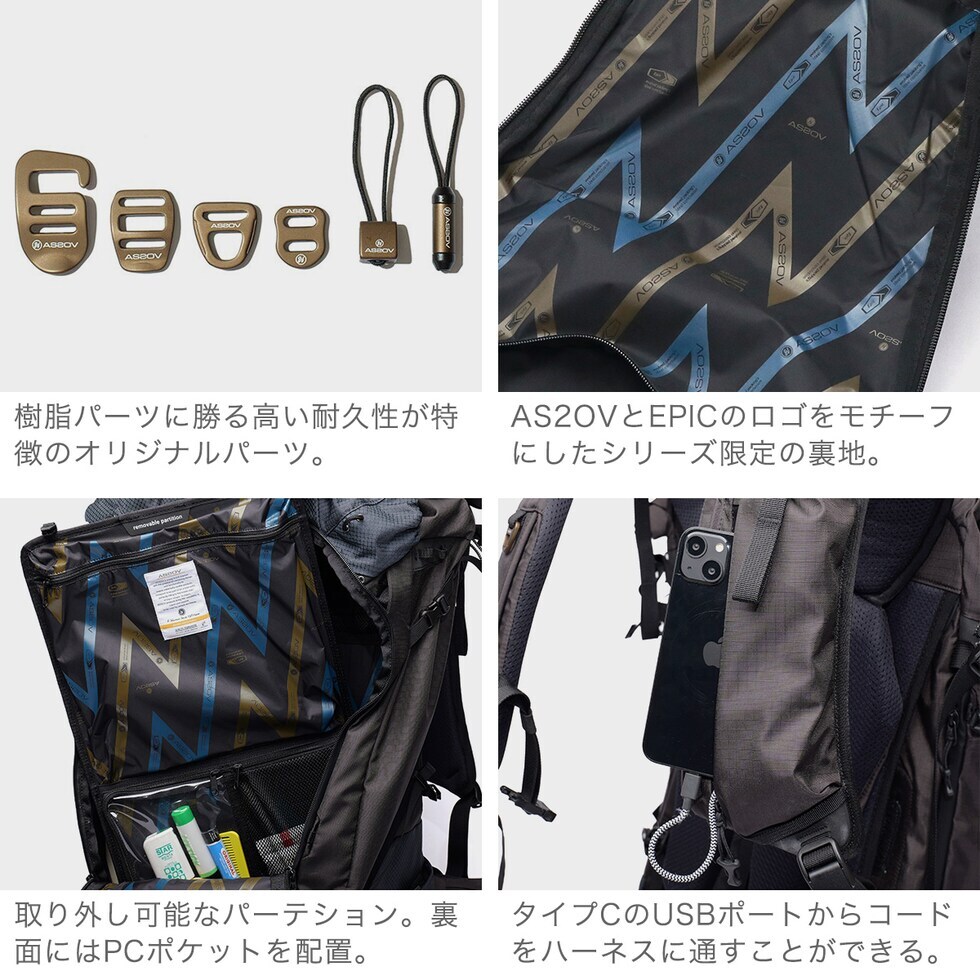 【正規品1年保証】 アッソブ リュック メンズ レディース AS2OV リュックサック バックパック 大きめ 防水 丈夫 耐久性 登山 山登り アウトドア ブランド 65L B4 PC収納 13inch EPIC SERIES BACK PACK 602400