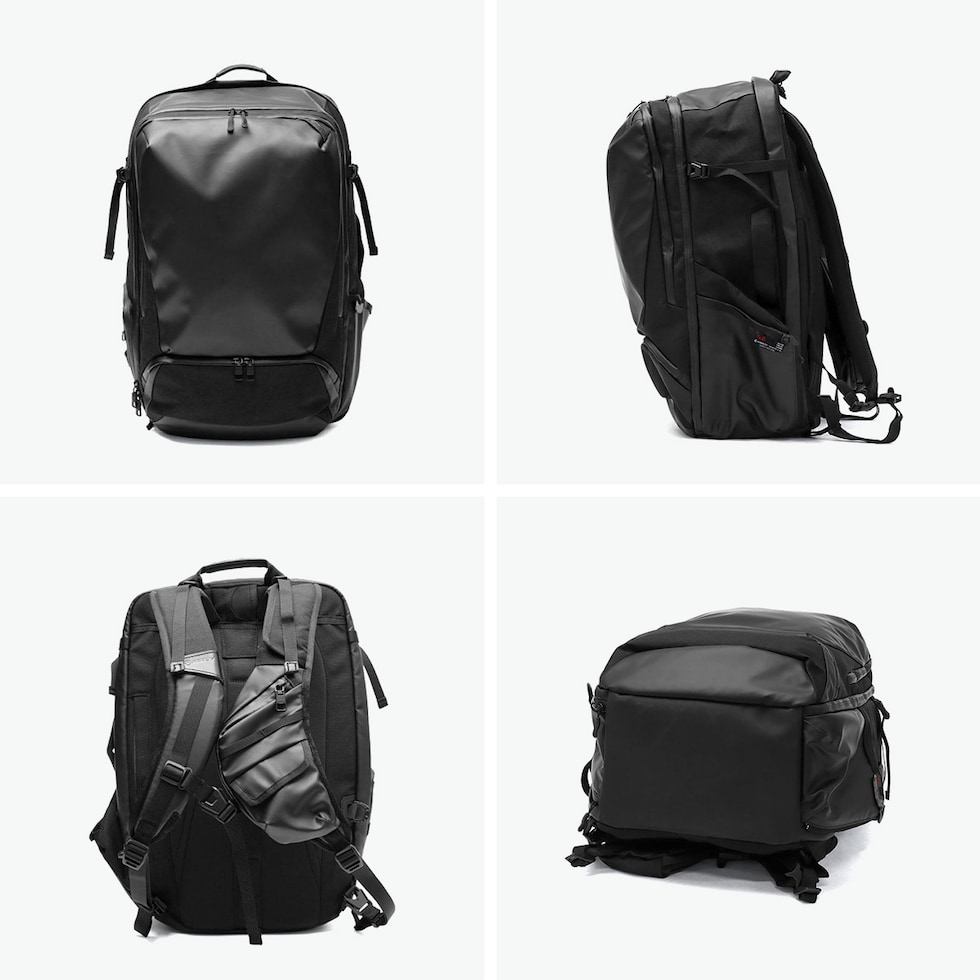 出張や長期旅行にも対応 ビジネスとレジャーの両方に対応する「BLEISURE」シリーズの大型バックパック。出張や旅行など、仕事とプライベートをシームレスに繋ぐデザインです。軽量で耐久性・耐水性に優れたオリジナルファブリックを採用。PC・タブレット収納やガジェット整理ポケット、衣類用収納スペース、キャリーオン機能を備えた万能アイテムです。 |