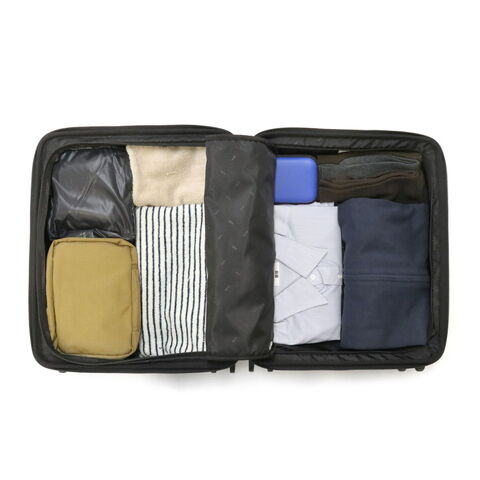 実用性に優れたキャリー シンプルなデザインに、本革製のハンドルで高級感をプラスした『Furnit-Z/ファーニットZ』シリーズのスーツケース。こちらは、3~4泊程度の旅行に適した40L容量の機内持ち込み対応サイズです。実用性に優れたフロントオープン機能や、セットアップ対応のトートバッグが付属し、快適な使い心地を実現しています。 |