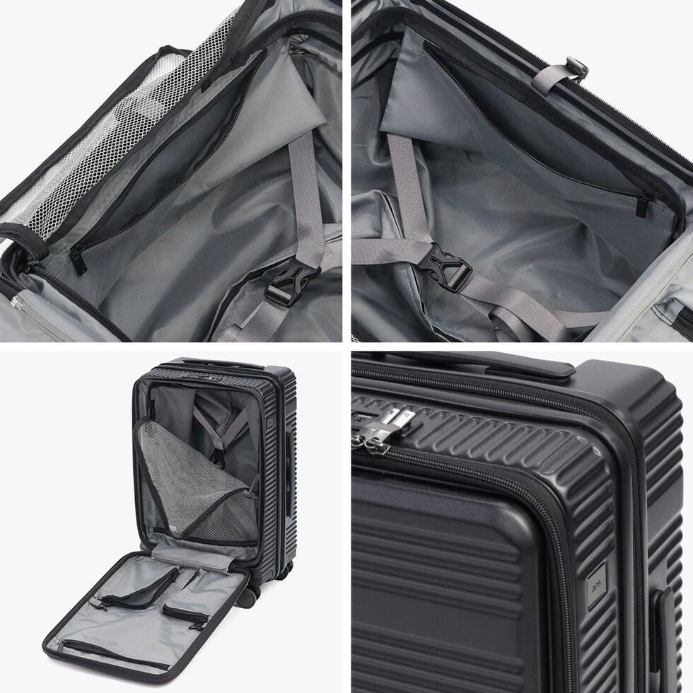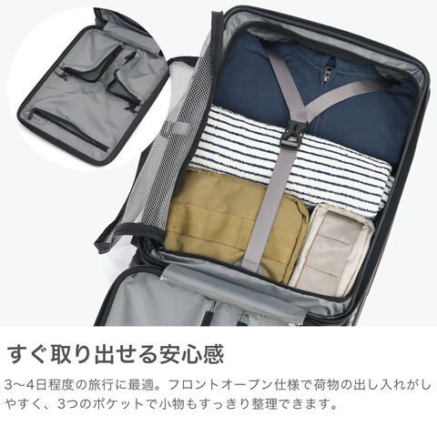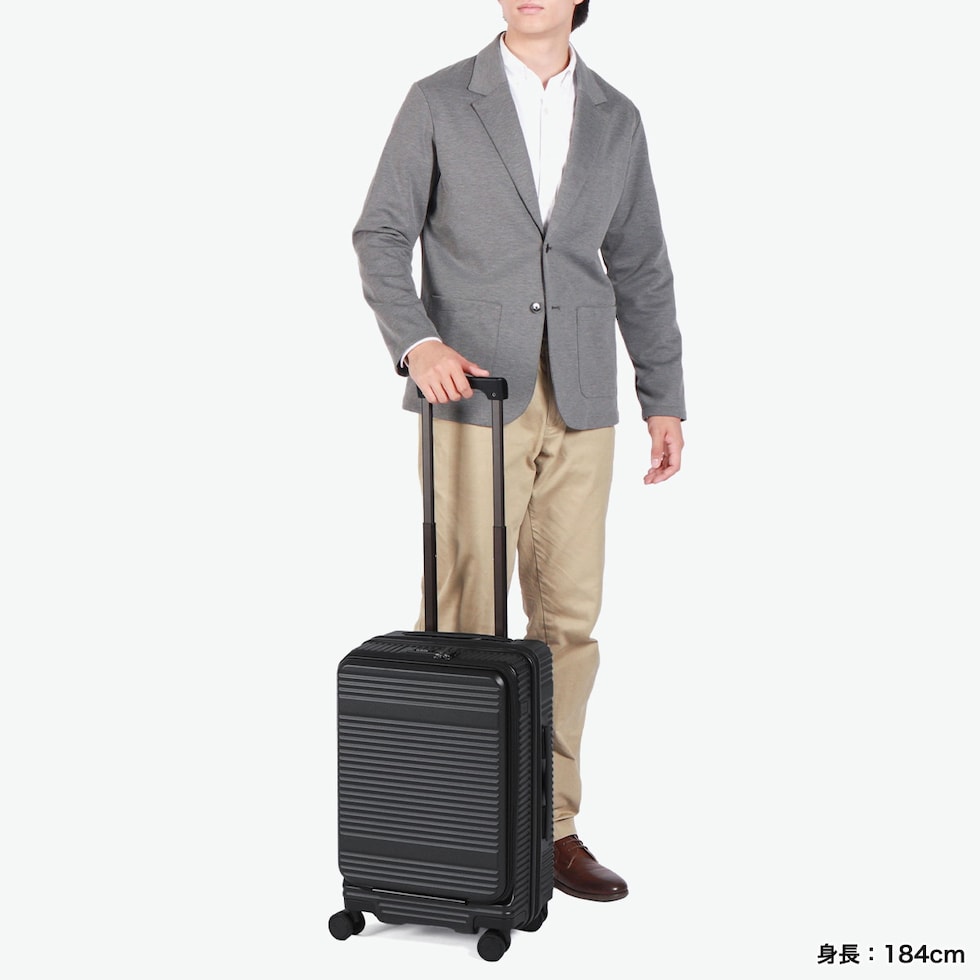 機内持ち込み型キャリー 横リブを基調としたシンプルなデザインに機能性をプラスした『サルートン』シリーズ。こちらは3~4泊程度の旅行に適した小型サイズです。拡張前の使用の場合は機内持ち込みが可能で利便性も抜群◎。荷物の増減にも対応しながら、フロントオープンで出し入れがしやすいのも嬉しいポイントです。 |