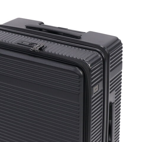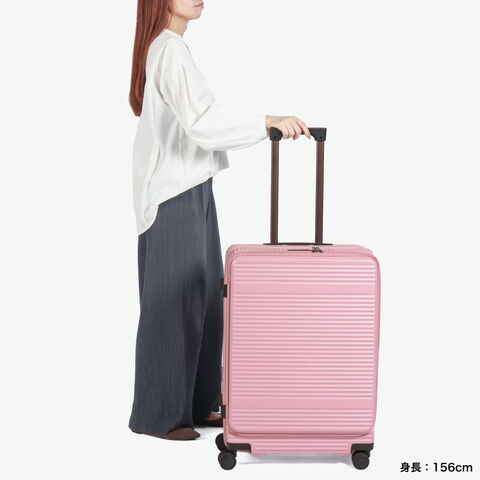 横リブを基調としたシンプルなデザインに機能性をプラスした『サルートン』シリーズ。こちらは6~8泊程度の長期旅行に適した大きめサイズです。約1週間分の荷物が収納でき、スムーズな出し入れを叶えるフロントオープンタイプ。荷物の増減にも対応できる拡張機能など、快適な旅をサポートする充実した機能が備わっています。