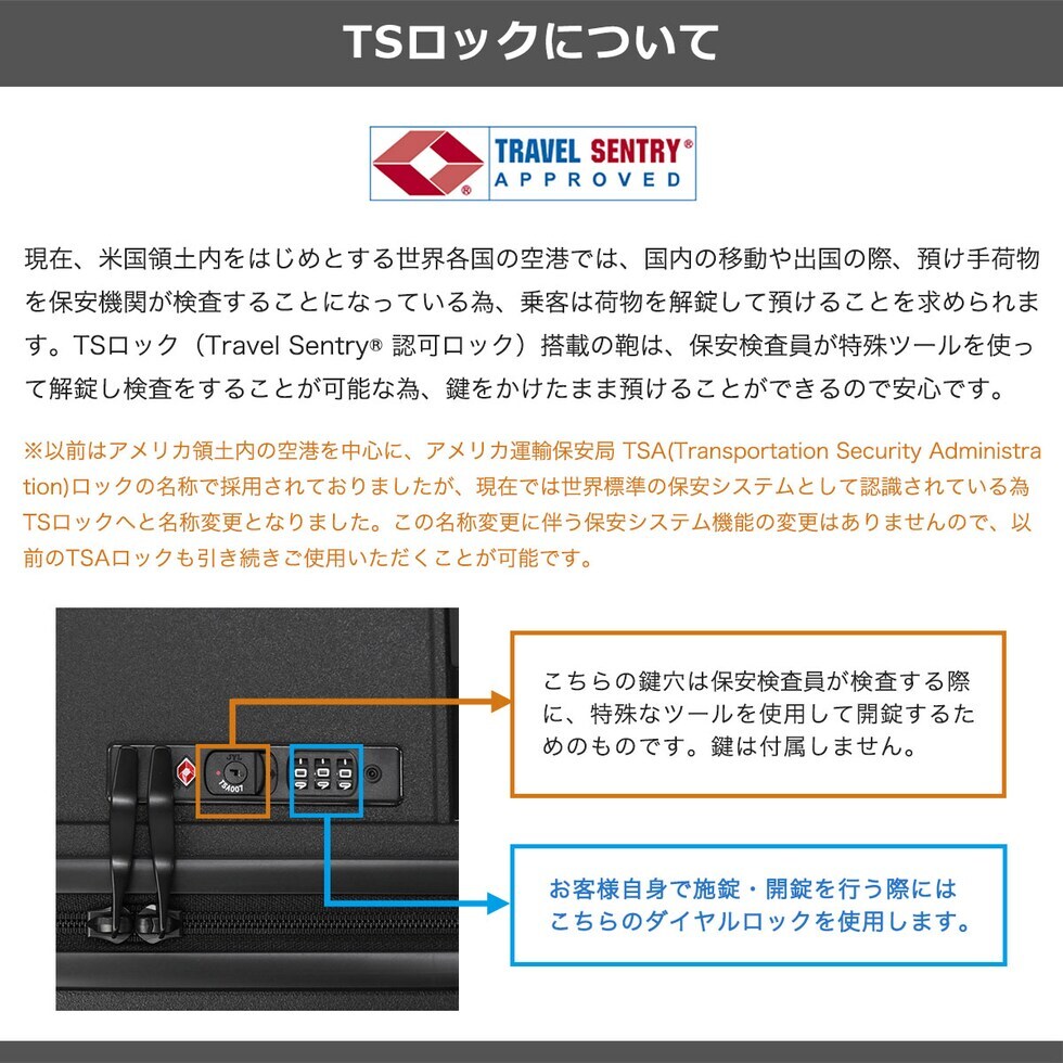 | TSAロック | あり ※TSAロックについて |