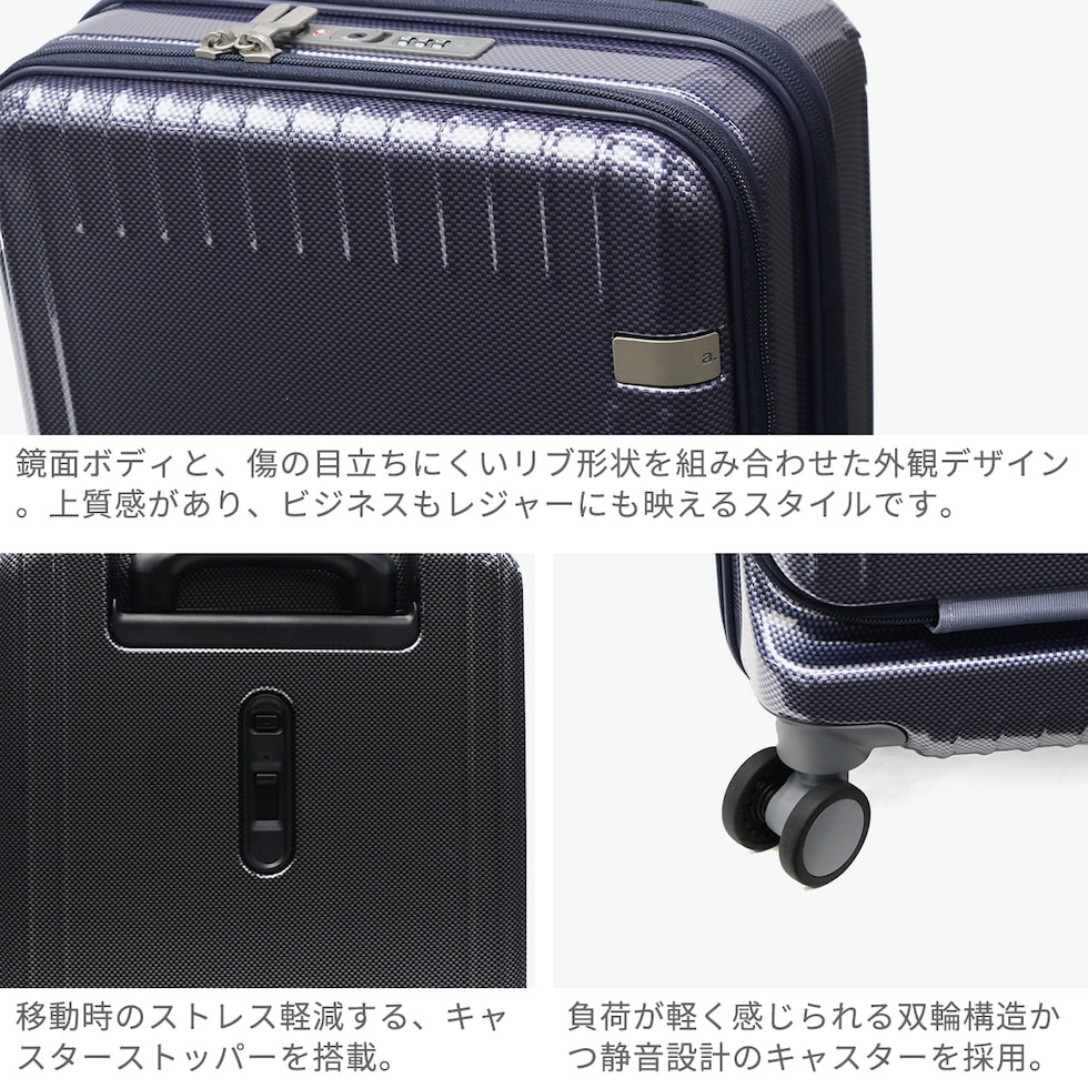 【正規品10年保証】 エーストーキョー スーツケース 機内持ち込み フロントオープン ace.TOKYO キャリーケース 軽量 ストッパー 21L 1泊 2泊 小型 Sサイズ 鏡面 双輪 静音 抗菌 TSA 小さめ パリセイド3-Z 06910