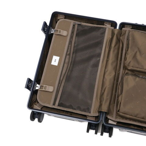 旅の時間をより快適に 斜めのリブが美しくフェードアウトするアルミニウムボディのスーツケース。本体カラーに合わせたパーツ構成で、ミニマルな統一感のあるデザインに仕上げています。こちらは、3~4泊程度の旅行に適した33L容量です。コンパクトながら実用性が高く、機内持ち込みにも対応した利便性の高さが魅力です。 |