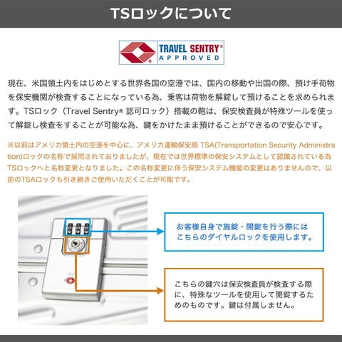 | <購入前にご確認ください> ・メーカーの意向により、付属品の収納袋や箱、製品の仕様やデザインは予告なく変更となる場合がございます。 ・下記による返品・交換はお受けすることができませんので、予めご了承ください。 └ 製品の性質上による細かいキズや塗装ムラ、気泡などがある場合。 └ 配送用の段ボールにキズ、汚れ、破損がある場合。 ・エキスパンダブル機能付きの製品は、マチ拡張時の3辺の和が機内持ち込みサイズ、預け入れ無料サイズを超える場合がございます。また、航空会社や飛行機の機種などによって規定が異なりますので、予めご確認の上お求めください。 ※機内持ち込みサイズ目安表はこちら ・水濡れ(雨・汗など)や日焼けにより、色落ち、退色する恐れがございます。商品のお取り扱いには十分にご注意ください。 ・柄の位置やカラーバランスなどは、生地の裁断や製造過程、素材の特性により画像とは異なる場合がございます。商品をお選びすることはできませんので、予めご了承ください。 ・極力実物に近い色味を再現しておりますが、モニター等の条件により画面上と実物では色味が異なって見える場合がございます。 |