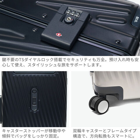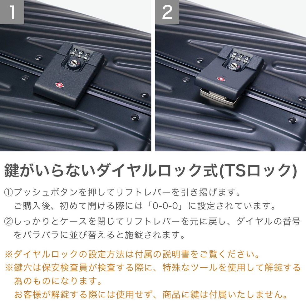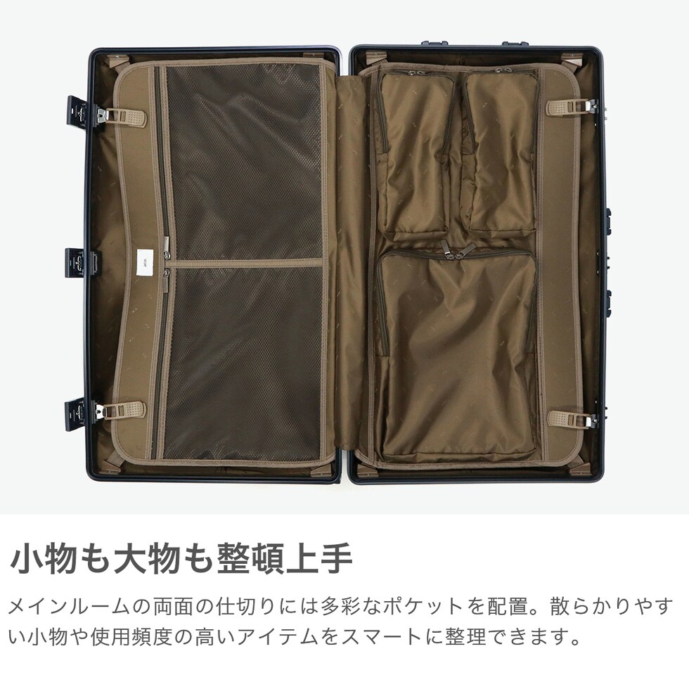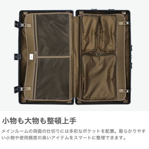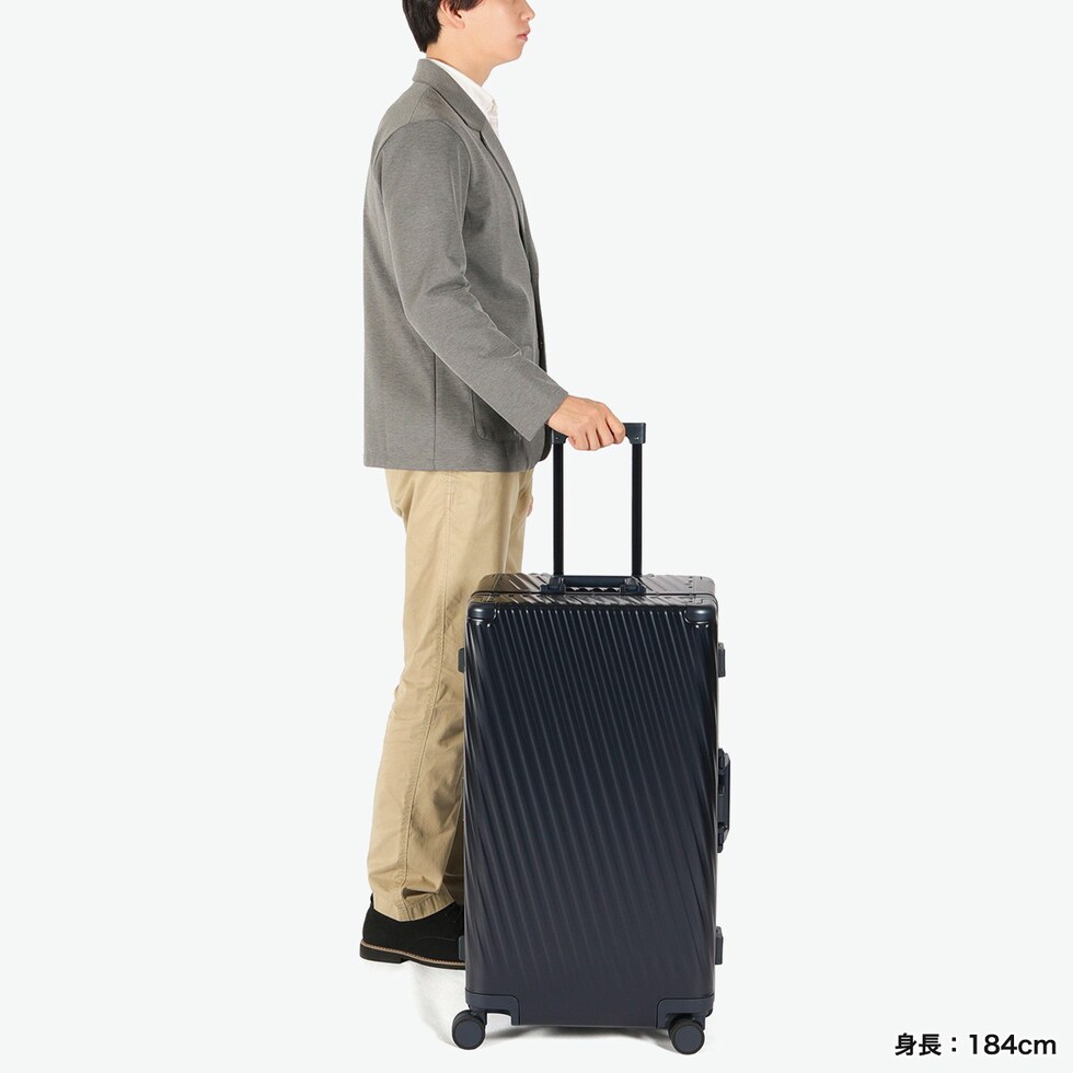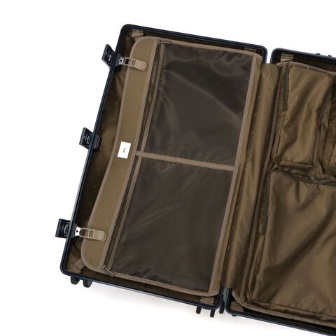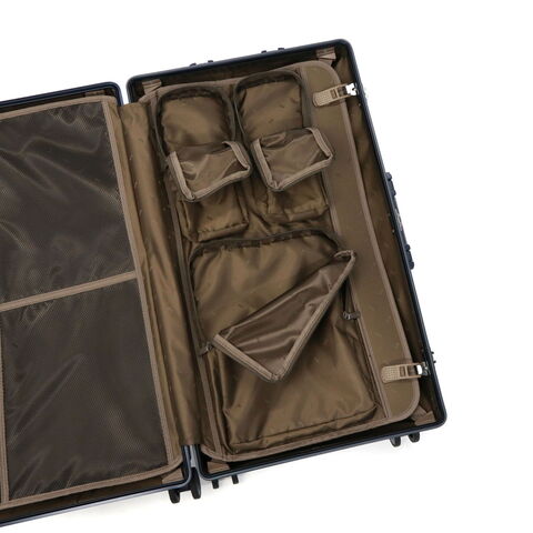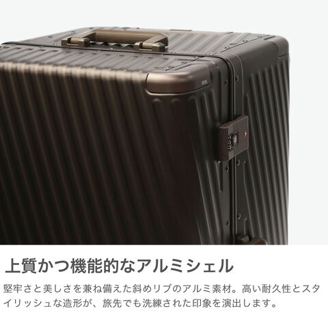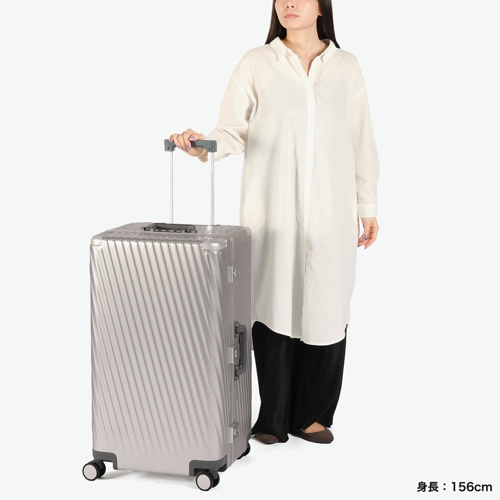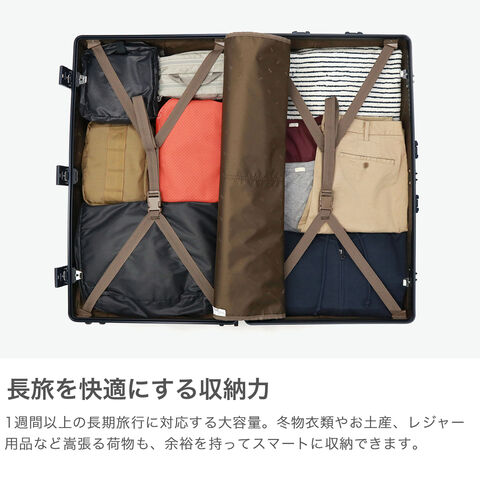 | 大容量と上質の両立 長旅を支えるタフな相棒 斜めのリブが美しくフェードアウトするアルミニウムボディのスーツケース。本体カラーに合わせたパーツ構成で、ミニマルな統一感のあるデザインに仕上げています。こちらは、1週間以上の長期旅行に対応した100Lの大容量サイズです。安心の収納力で余裕を持ったパッキングができ、旅を快適にする機能性も兼ね備えた優れものです。 |