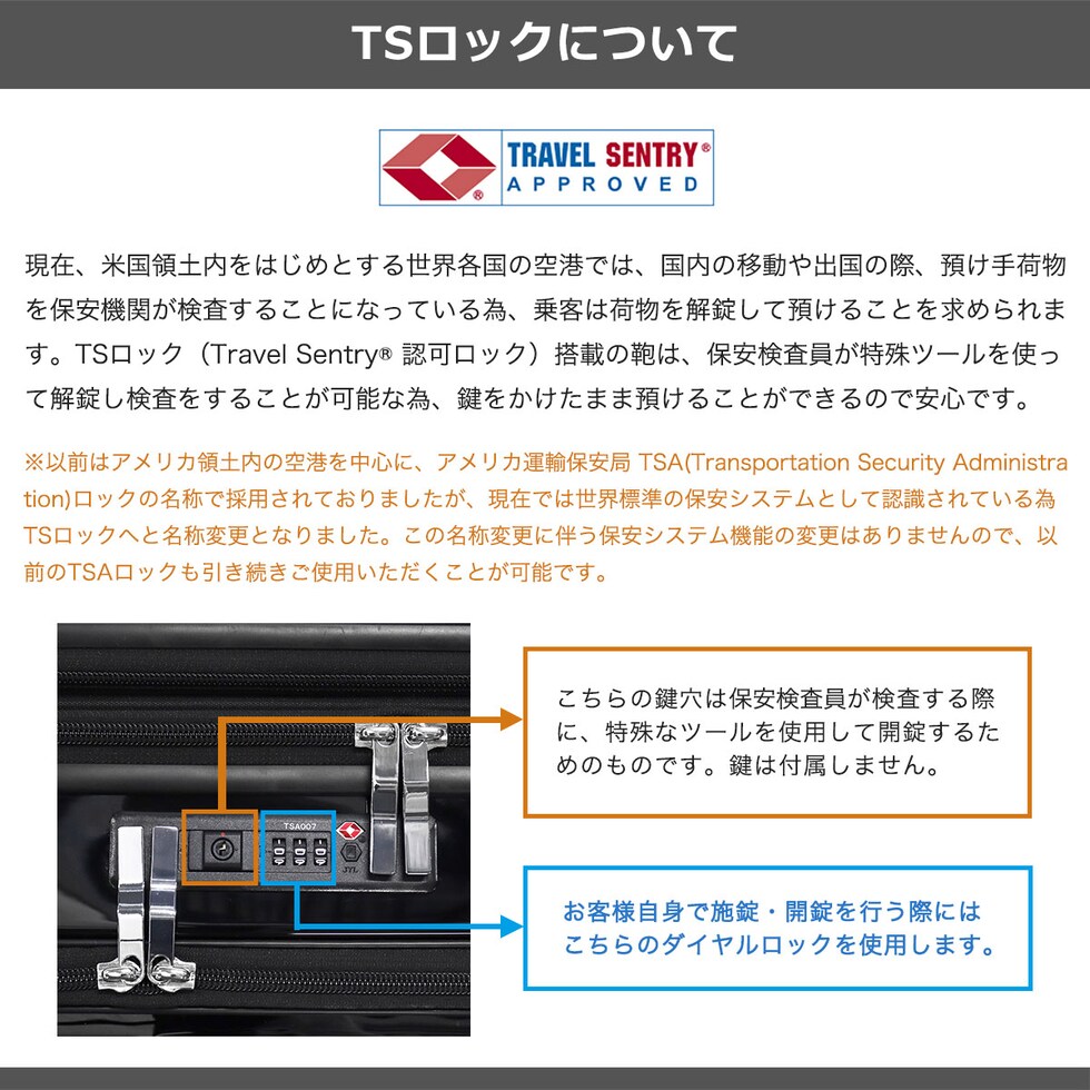 | TSAロック | あり ※TSAロックについて |