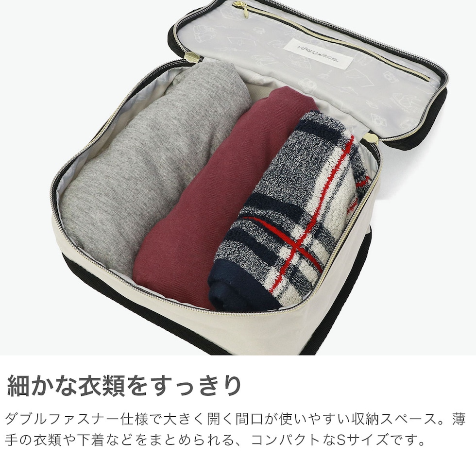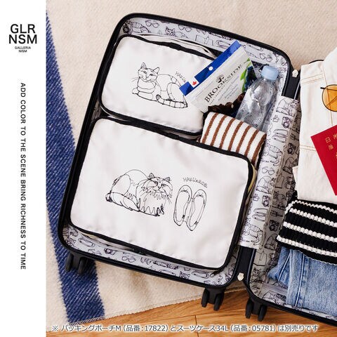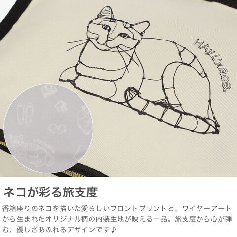 気分を上げる愛らしさ ワイヤーアート作家・小川学さんが手がける「HAyU」と「ace.」がコラボレーションした、Sサイズトラベルポーチ。ネコや旅にまつわるワイヤーアートを柄に落とし込んだ可愛すぎるデザイン。スーツケース内で薄手の衣類や下着、靴下などのパッキングに便利なサイズ感。オリジナルのプリントはポーチのサイズごとに異なり、サイズ違いで揃えて使うのもおすすめです。パッキングポーチM(17822)と組み合わせるとHAyUパキラの34Lスーツケース(05781)にぴったり収納可能となっています。 |