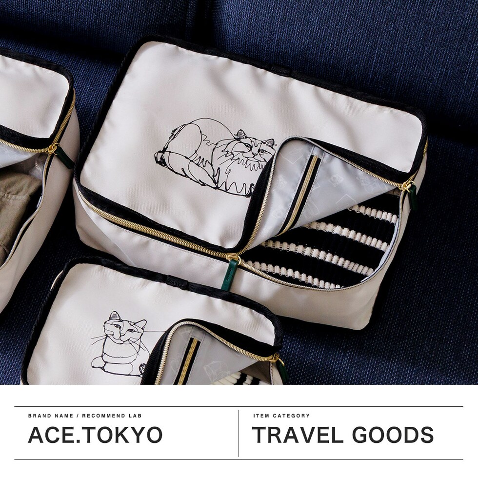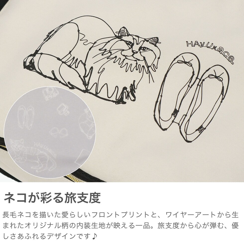 【正規品5年保証】 エーストーキョー ポーチ 大きめ レディース メンズ 旅行 可愛い ブランド ace.TOKYO マチ付き おしゃれ マチ 収納 パッキング トラベルポーチ Mサイズ 猫 HAyU×ace. HAyU パッキングポーチM 17822