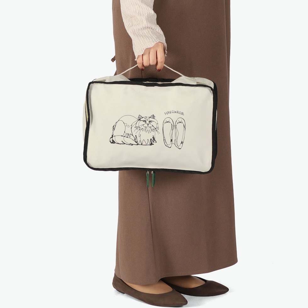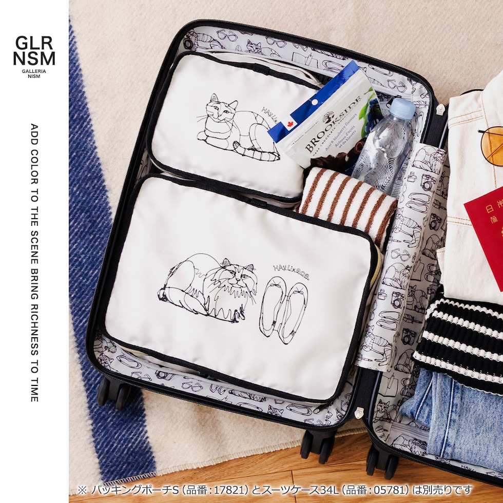 パッキングポーチ ワイヤーアート作家・小川学さんが手がける「HAyU」と「ace.」がコラボレーションした、Mサイズトラベルポーチ。ネコや旅にまつわるワイヤーアートを柄に落とし込んだ可愛すぎるデザイン。スーツケース内で衣類などのパッキングに便利なサイズ感。オリジナルのプリントはポーチのサイズごとに異なり、サイズ違いで揃えて使うのもおすすめです。パッキングポーチSと組み合わせるとHAyUパキラの34Lスーツケース(05781)に、Lサイズポーチと組み合わせると48Lスーツケース(05782)にぴったり収納可能となっています。 |