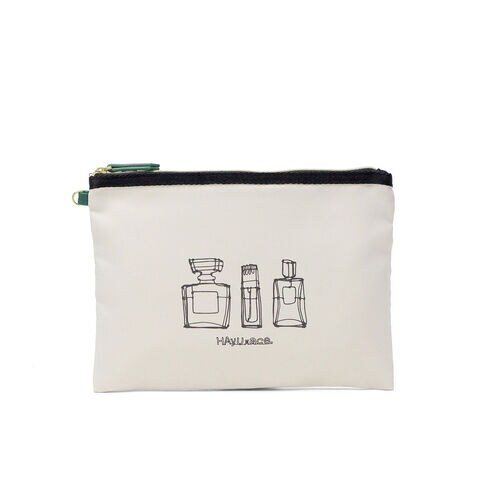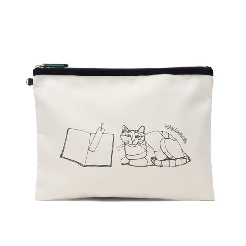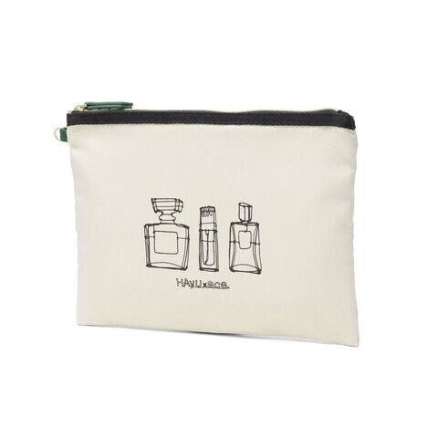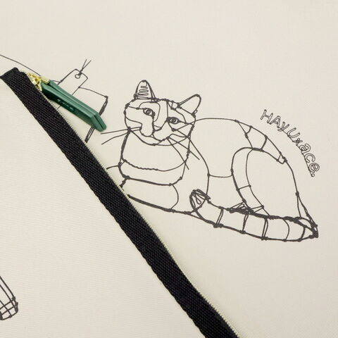 3点ポーチセット ワイヤーアート作家・小川学さんが手がける「HAyU」と「ace.」がコラボレーションした、フラットポーチセット。ネコや旅にまつわるワイヤーアートを柄に落とし込んだ可愛すぎるデザイン。バラバラで単品で使っても、付属のストラップでまとめて使うこともできる3点セットです。香水瓶と香箱座りのネコのプリントが可愛いくデザインされており、旅行からデイリー使いまで活躍してくれるアイテムとなっています。 |