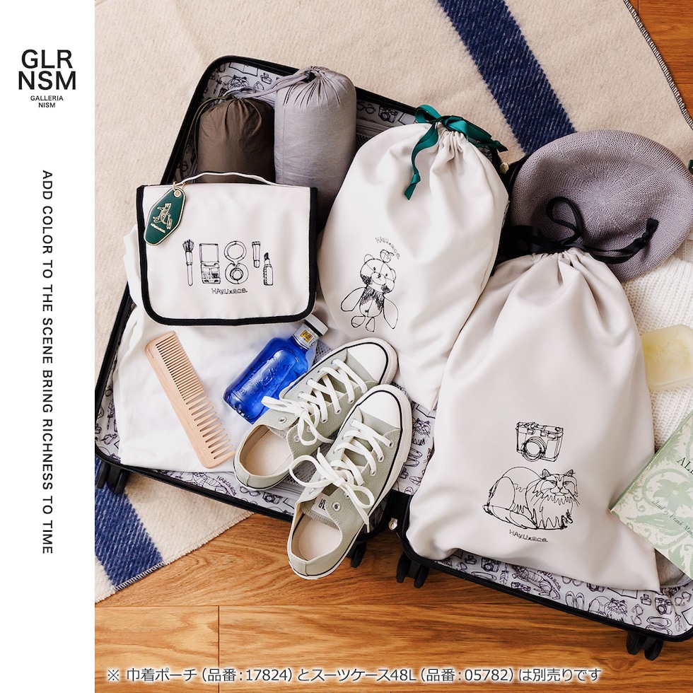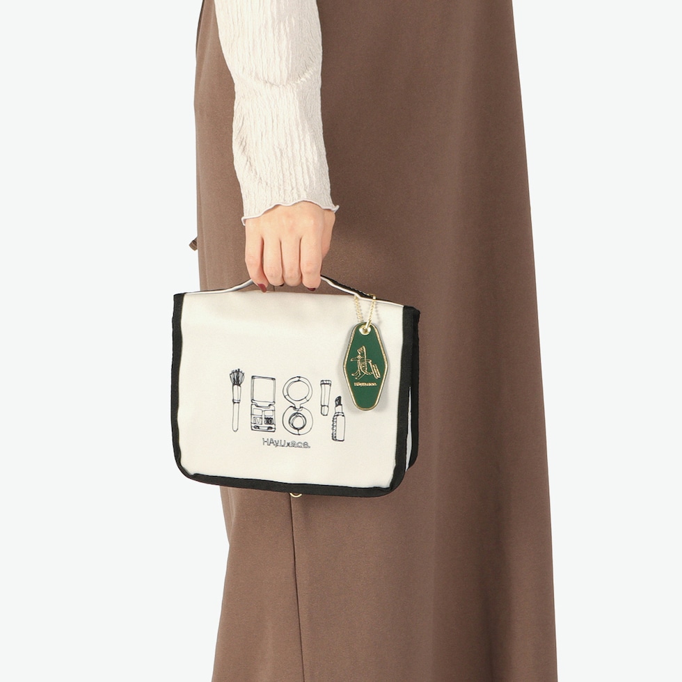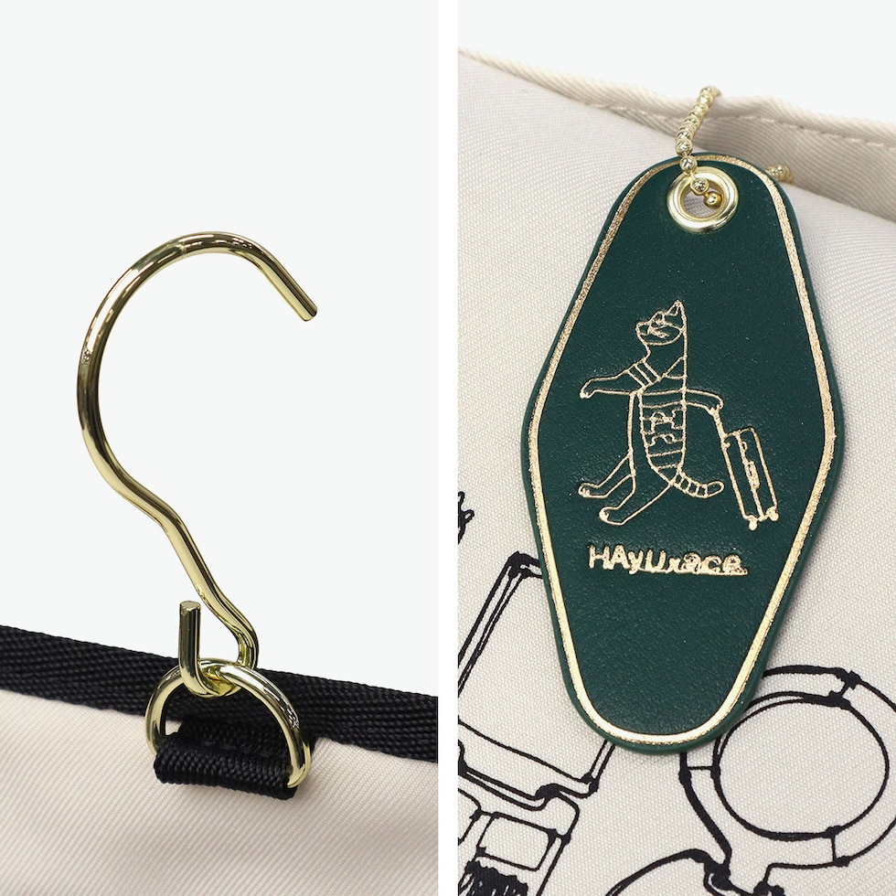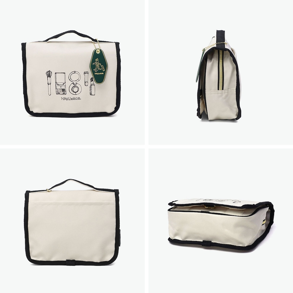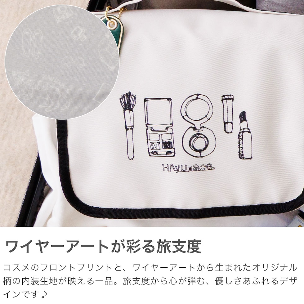 旅に便利なポーチ ワイヤーアート作家・小川学さんが手がける「HAyU」と「ace.」がコラボレーションした、コスメポーチ。ネコや旅にまつわるワイヤーアートを柄に落とし込んだ可愛すぎるデザイン。コスメがプリントされたポーチの内装には、中身が見やすいビニール素材や通気性の良いメッシュ素材を採用。ホテルやバスルームなどでポーチを広げて吊るせるフック付きで、旅行時に活躍すること間違えなしのアイテムです。 |