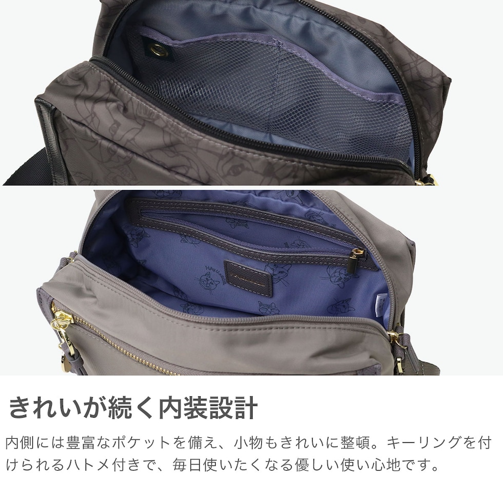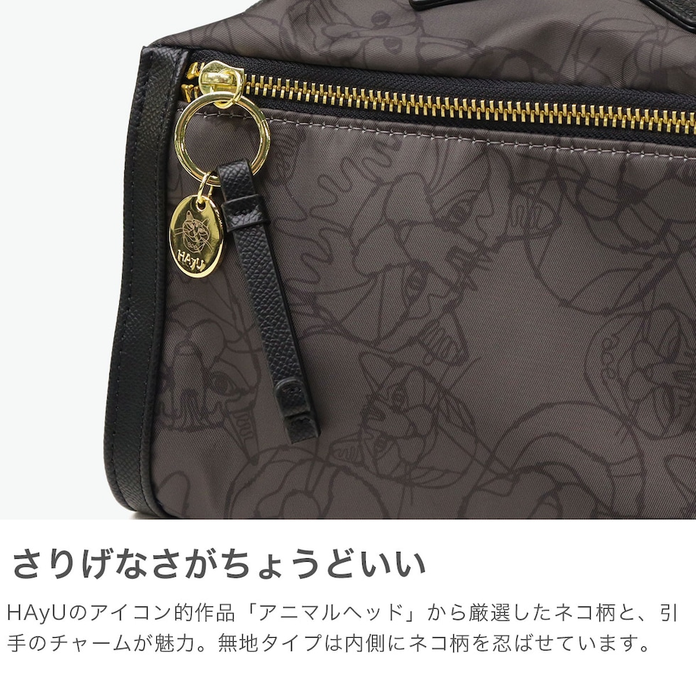ショルダーバッグ ワイヤーアート作家・小川学さんが手がける「HAyU」と「ace.」がコラボレーションした個性豊かなネコヘッドが描かれた柄が特徴の横型ショルダーバッグ。ゴールドのロゴ入りチャームがポイントになっており、メイン素材がネコ柄のカラーには無地の内装生地を採用し、メイン素材が無地のカラーには内装生地にネコ柄を取り入れたこだわりの仕上がり。落ち着いたデザインでいろんなスタイルとの合わせやすさも意識し作られたデザインとなっています。 |