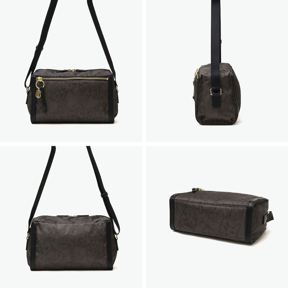 | 素材 | <表地> ナイロンツイル(インターロック加工):ブラック、グレージュ ポリエステルツイル(インターロック加工):チャコール(ネコヘッド柄) <付属> 合成皮革(ポリウレタン) |