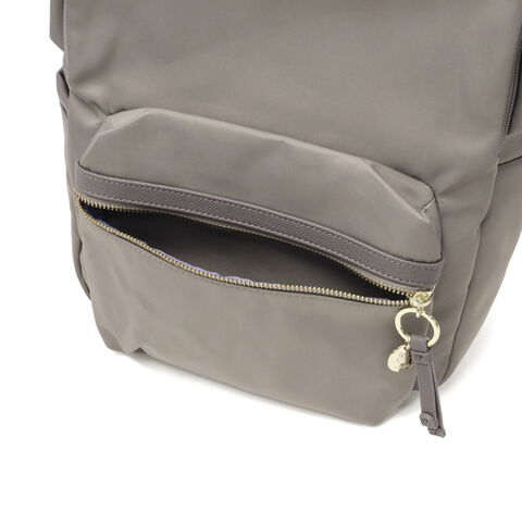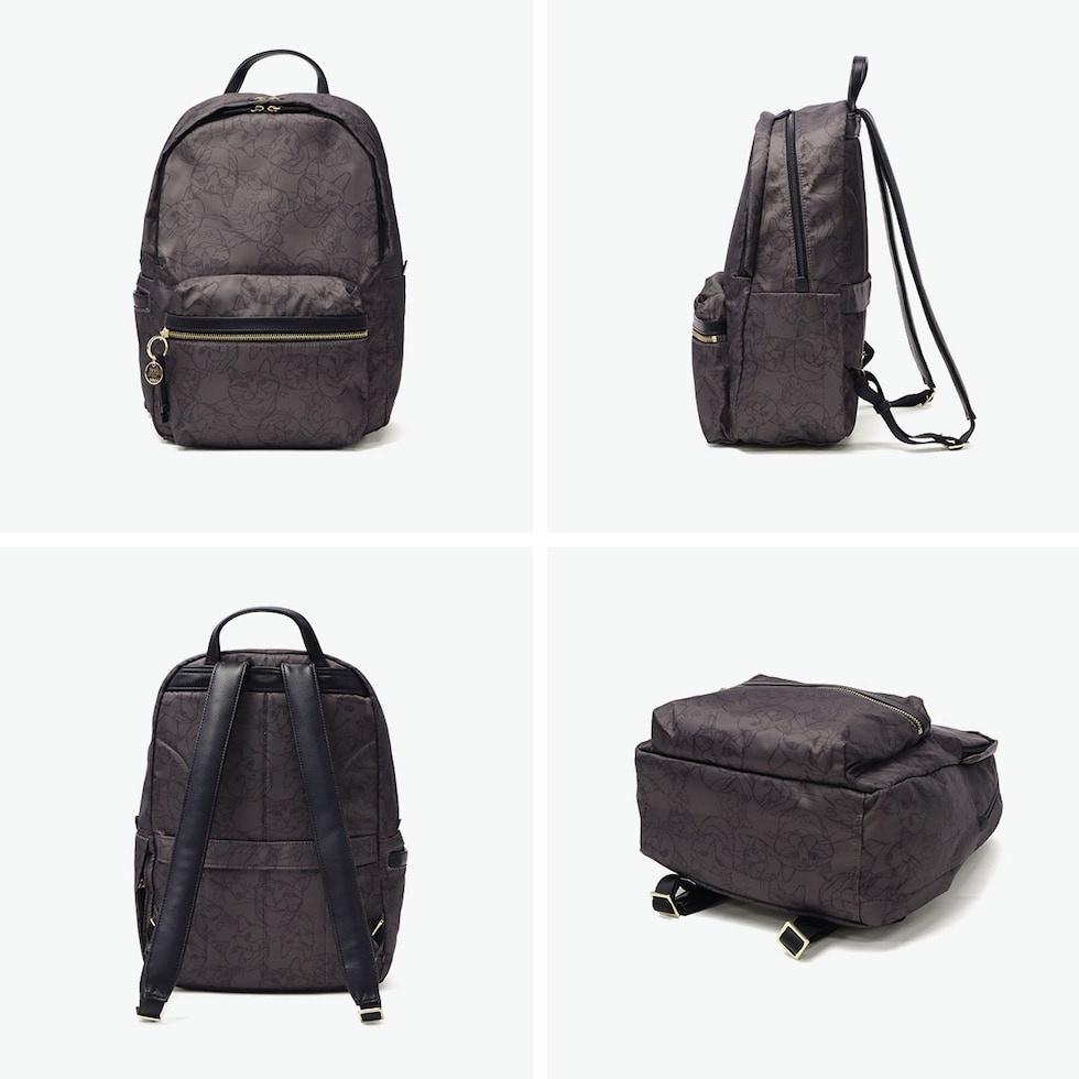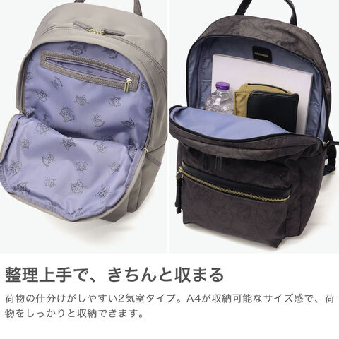 | 素材 | <表地> ナイロンツイル(インターロック加工):ブラック、グレージュ ポリエステルツイル(インターロック加工):チャコール(ネコヘッド柄) <付属> 合成皮革(ポリウレタン) |