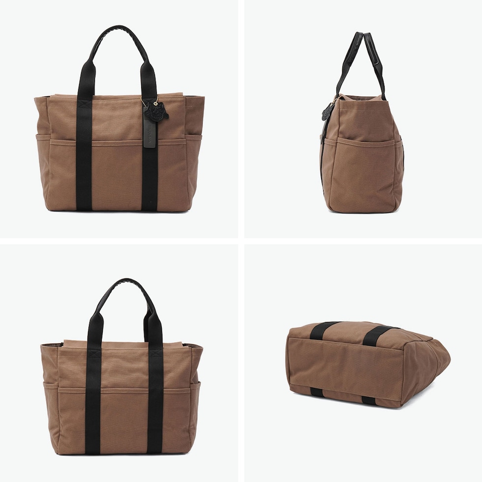 大きめトートバッグ 庭仕事用のガーデントートをイメージした、全方位にぐるりとついた外ポケットが特徴のトートバッグ。A4サイズも入るので、お仕事用としてもおすすめです。メインの収納スペースはざっくりラフに使えるので、荷物が多い方にもぴったり。ワイヤーアート作家・小川学さんが手がける「HAyU」のワイヤーアートから起こしたオリジナル柄のポーチが付属します。 |