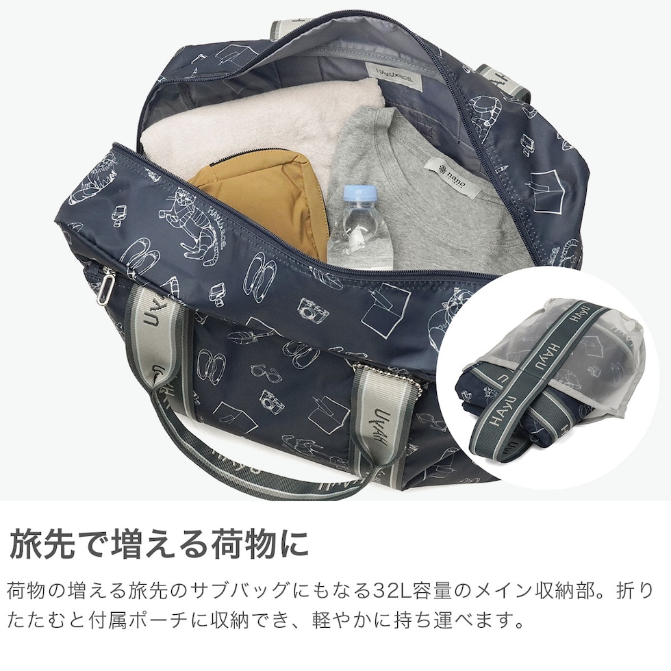 【正規品5年保証】 エーストーキョー ボストンバッグ レディース メンズ 旅行 折りたたみ ace.TOKYO サブバッグ 軽い かわいい 横 小さめ おしゃれ ブランド 32L A4 B4 ネコ柄 HAyU フォールディングバッグ 17863