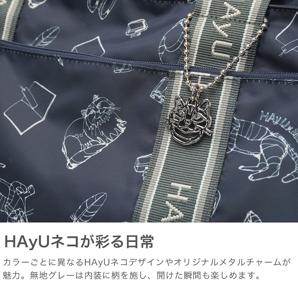 コンパクトボストン ワイヤーアート作家・小川学さんが手がける「HAyU」と「ace.」がコラボレーションした個性豊かなネコたちが飄々と歩く「行進ネコ」柄が特徴の32L容量ボストンバッグ。普段使いやジム、旅行など幅広く活躍。折りたためば、付属のメッシュポーチに収納することが可能です。また、ポーチに身の回りの荷物を入れれば、ホテルや旅館でのちょっとした移動にも便利にお使いいただけます。ネコヘッドのオリジナルメタルチャームがワンポイントとなった可愛い仕上がりとなっています。 |