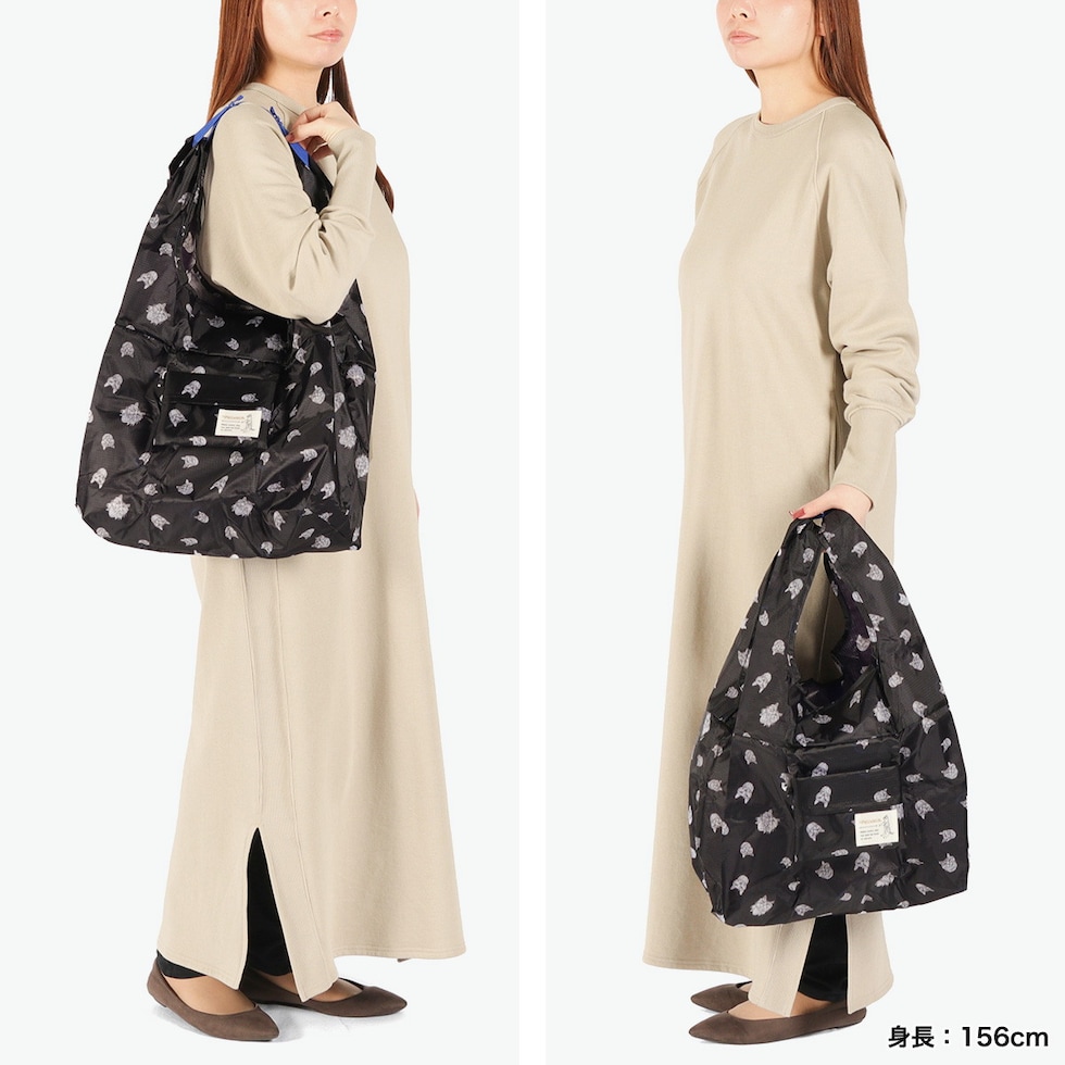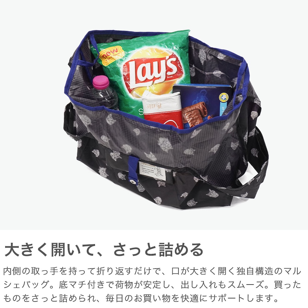 肩掛け可能なエコバッグ ワイヤーアート作家・小川学さんが手がける「HAyU」のワイヤーアートから起こしたオリジナル柄で、持つだけで楽しい気分になれるマルシェバッグ。内側の取っ手を持って折り返すと、口が大きく開いて荷物の出し入れがスムーズにできる独自構造。肩掛けしやすい着脱可能なショルダーストラップ付きで、荷物が重くなった際にも安心の作りです。 |