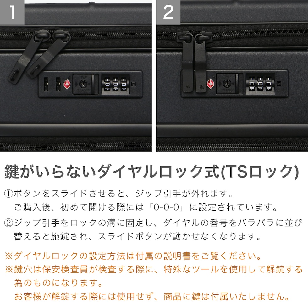 | TSAロック | あり ※TSAロックについて |