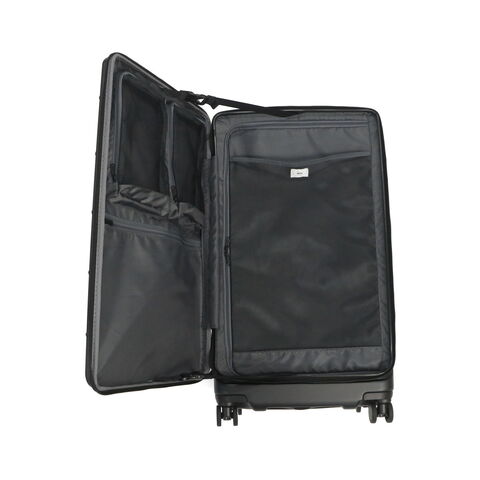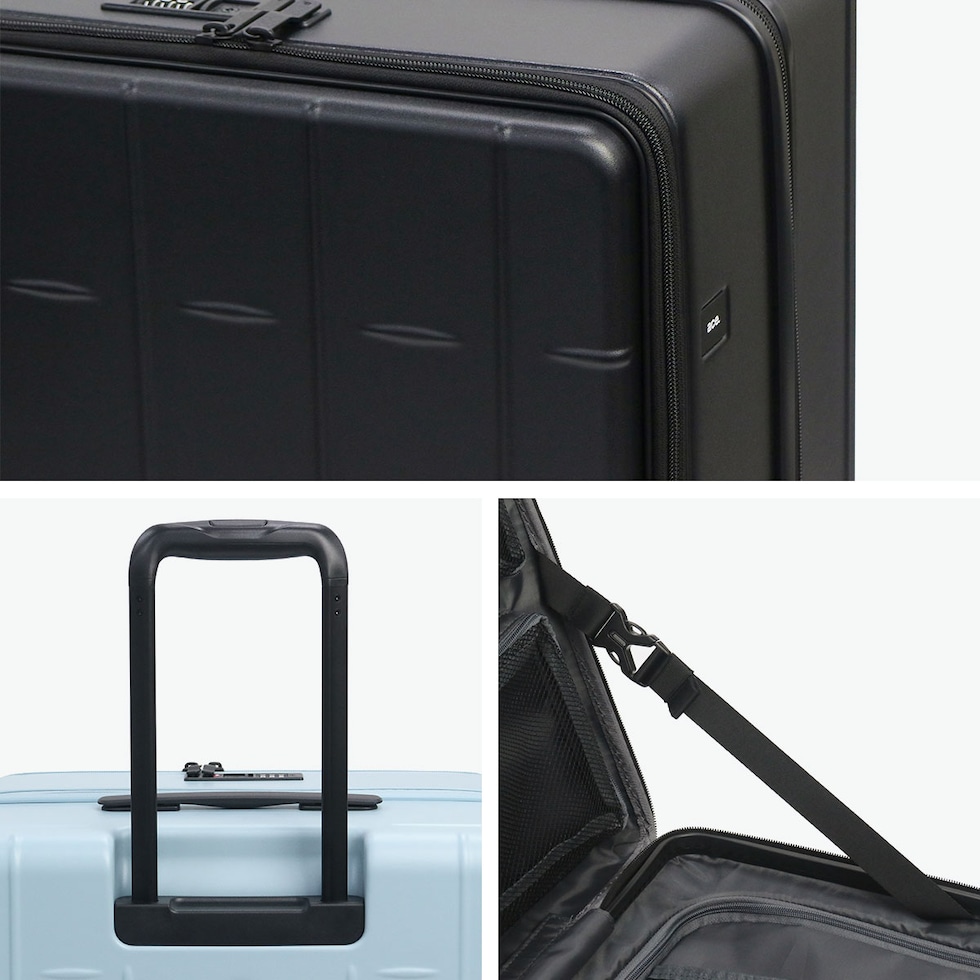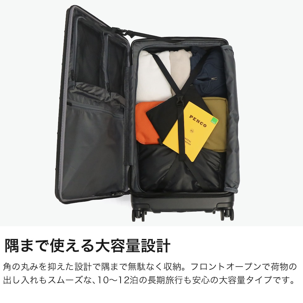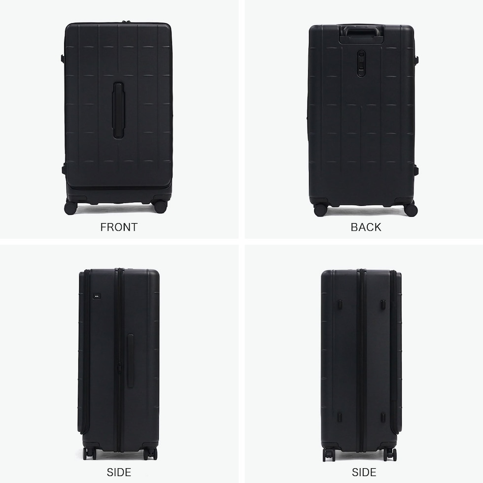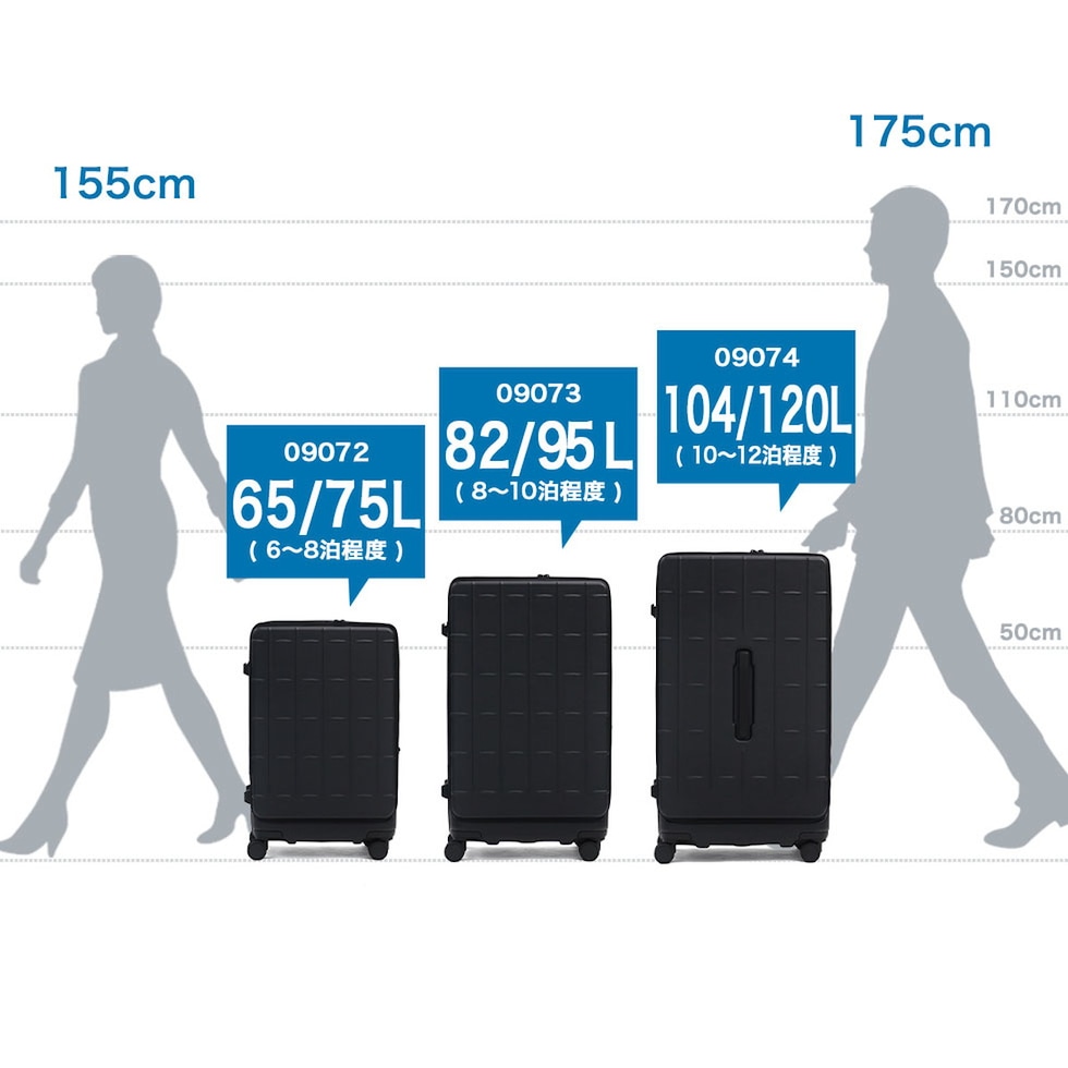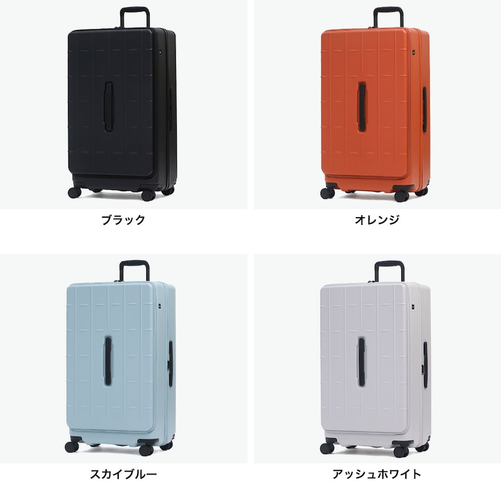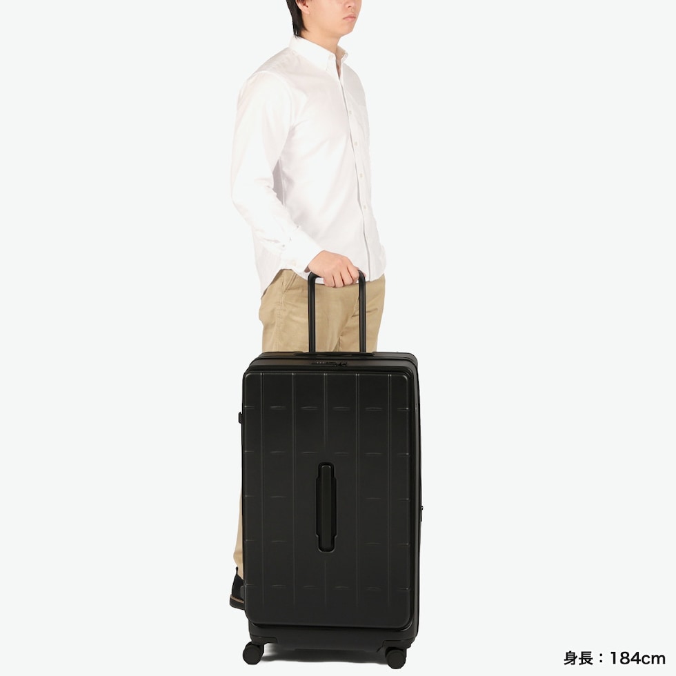 大容量キャリーケース シンプルな格子状のデザインがポイントのフロントオープンタイプの『トレリスZ』のスーツケース。荷物に応じて104/120Lに拡張可能なエキスパンダブルデザイン。また、不意な走行を防ぐキャスターストッパーや、走行時も快適な静音キャスターを装備。内装スペースを有効活用でき荷物が収納しやすいフロントオープン仕様で、個人でもファミリーでも使い勝手の良いアイテムです。 |