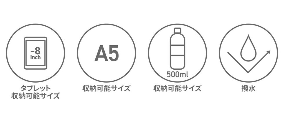 | 仕様 | <外側> マグネットポケット(L)×1 ジップポケット(M)×1 ジップポケット(S)×1 <内側> タブレット収納×1 ポケット(M)×1 <付属品> チャーム×1 |