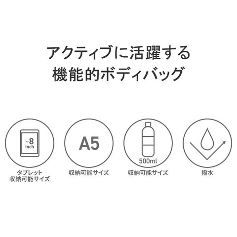 | アクティブに活躍する 機能的ボディバッグ スポーツテイストを随所に盛り込んだシリーズ『SUPER HORNET/スーパーホーネット』のボディバッグです。表面に撥水加工を施した軽くて丈夫な素材を使用することで、雨に強くタウンユースに活躍してくれます。また、イエローにブラックのロゴが映える付属のチャームがデザインのアクセントになっています。 |