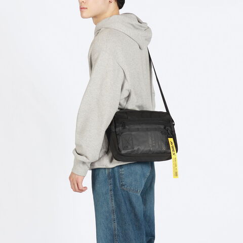| タウンユースに溶け込む ミリタリーショルダー スポーツテイストを随所に盛り込んだシリーズ『SUPER HORNET/スーパーホーネット』のミニショルダーバッグです。表面に撥水加工を施した軽くて丈夫な素材を使用することで、雨に強くタウンユースに活躍してくれます。また、イエローにブラックのロゴが映える付属のチャームがデザインのアクセントになっています。 |