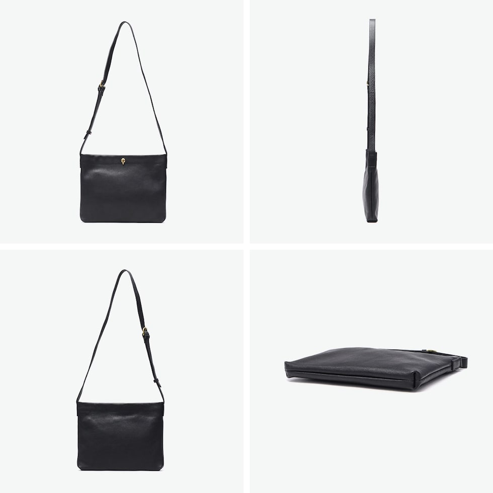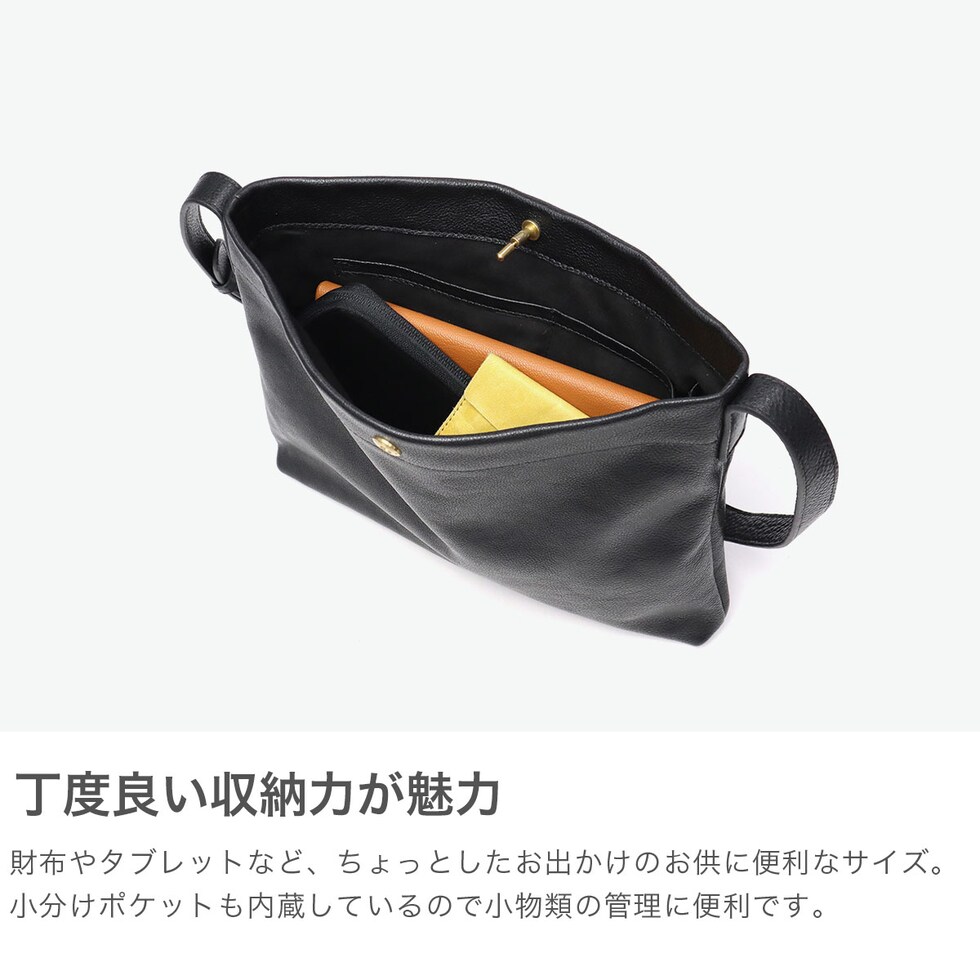 洗練されたサコッシュ どこかレトロさを感じる『A_W』らしいモダンでクラシックな雰囲気に仕上がったショルダーバッグです。シンプルなサコッシュをベースにデザインされたミニマルなアイテム。しっとり柔らかなカウレザーは経年変化も楽しめ、使うほどに自分だけの風合いに。アンティーク加工を施したホックが、ヴィンテージな雰囲気を演出しています。 |
