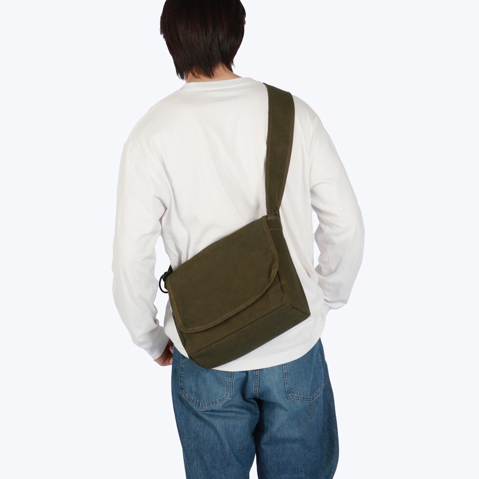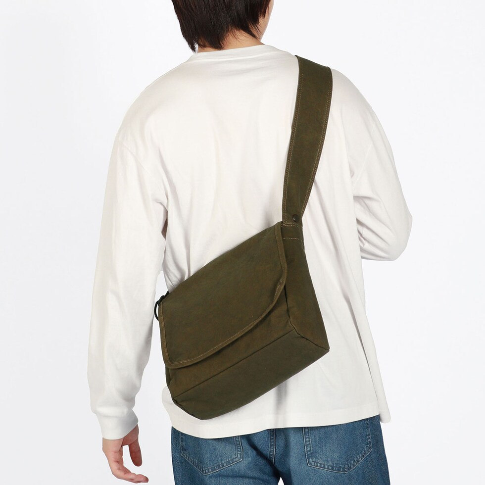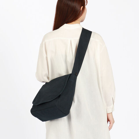 | こだわりぬいた素材感と 洗練されたディテール 独特の風合いをまとったマテリアル『KUROSABI/黒さび染め』のショルダーバッグ。新たなBAGGY PORTのオリジナル素材として、ALBERTON社15ozアーミーダックをベースに黒さび加工を重ね染めた唯一無二の素材感に。緩やかにラウンドさせたフラップや、太さを持たせたストラップは調整部にかけて細く変化するつくりでシンプルながらもこだわりを感じるディテールとなっています。 |