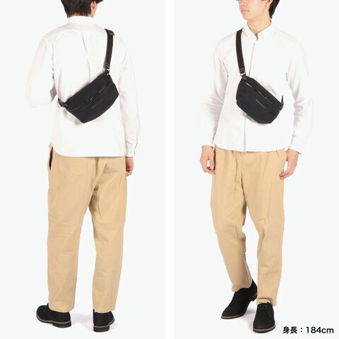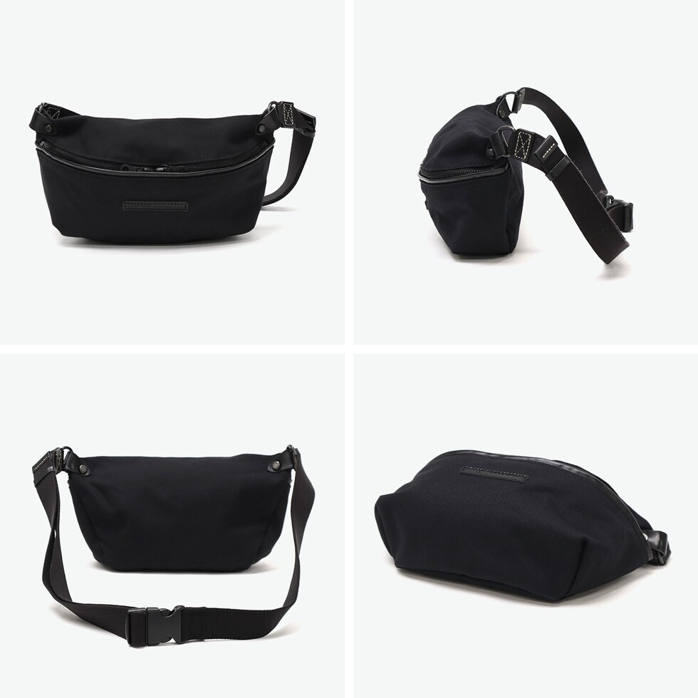 | 永く愛用したくなる 扱いやすいサイズ感 耐久性に優れた高密度帆布に、ヌメ革のアクセントが効いた『BLACK/ブラック』シリーズからセパレートボディバッグが登場。程よくコンパクトなサイズ感・ユニセックスで使えるシンプルなデザインで、お休みのお出かけはもちろん旅行などにもお勧めできるアイテムです。 |