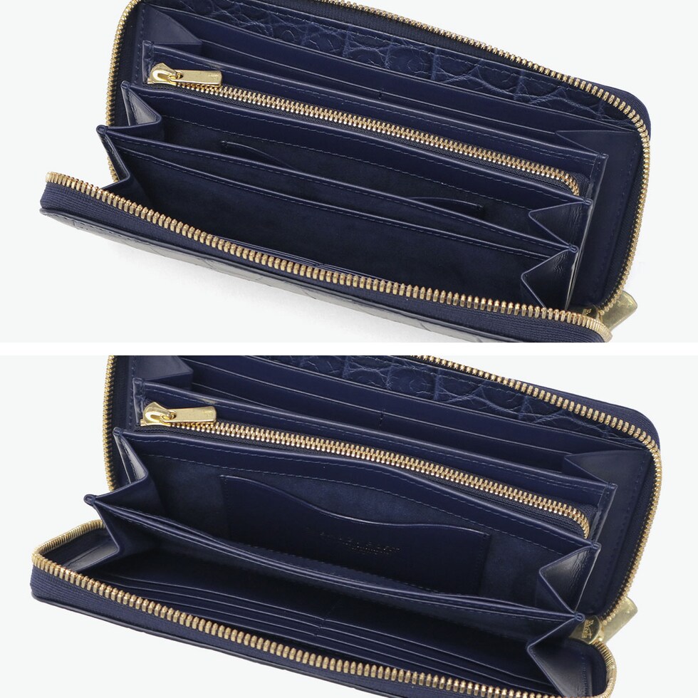 | 藍染クロコが放つ品格 大人を魅了する長財布 藍染クロコダイルを贅沢に使用した、高級感溢れるロングウォレット。天然藍ならではの奥行きのあるブルーが斑模様を際立たせ、エキゾチックでありながら上品な雰囲気に仕上がっています。内装には札入れや小銭入れ、カードポケットをバランス良く配置し、日常使いに十分な収納力を確保。使うほどに艶が増し、自分だけの風合いへと育っていくのも魅力です。ギフトにも最適、大人の手元を格上げする特別感のあるアイテムです。 |