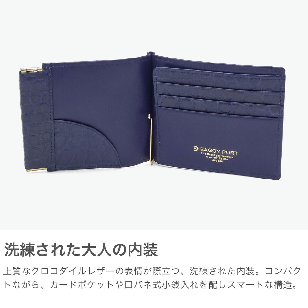 バギーポート マネークリップ メンズ レディース 札ばさみ BAGGY PORT ブランド 大人 おしゃれ ミニ 財布 コンパクト 二つ折り スリム 小銭入れあり 藍染め 本革 ワニ革 クロコ 本藍染め×クロコダイル ZWL-8002