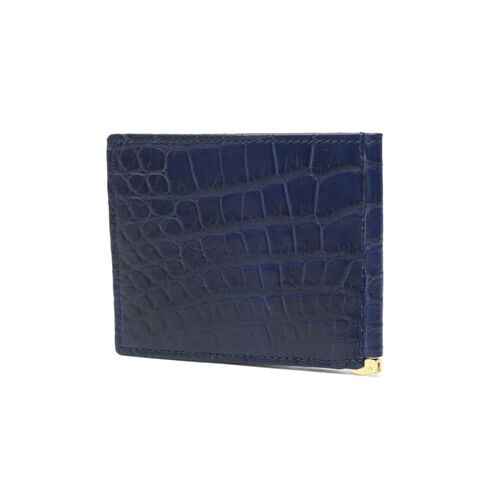 | 唯一無二の藍染めクロコ 手元に特別な存在感 藍染クロコダイルを贅沢に使用した、高級感溢れるマネークリップ。天然藍ならではの奥行きのあるブルーが斑模様を際立たせ、エキゾチックでありながら上品な雰囲気に仕上がっています。薄型の二つ折りデザインはポケットに収まりやすく、日常使いに最適。開閉しやすいバネ式小銭入れやカードポケットを備え、必要な収納を無駄なく配置しています。使うほどに艶が増し、自分だけの風合いへと育っていくのも魅力です。ギフトにも最適、大人の手元を格上げする特別感のあるアイテムです。 |