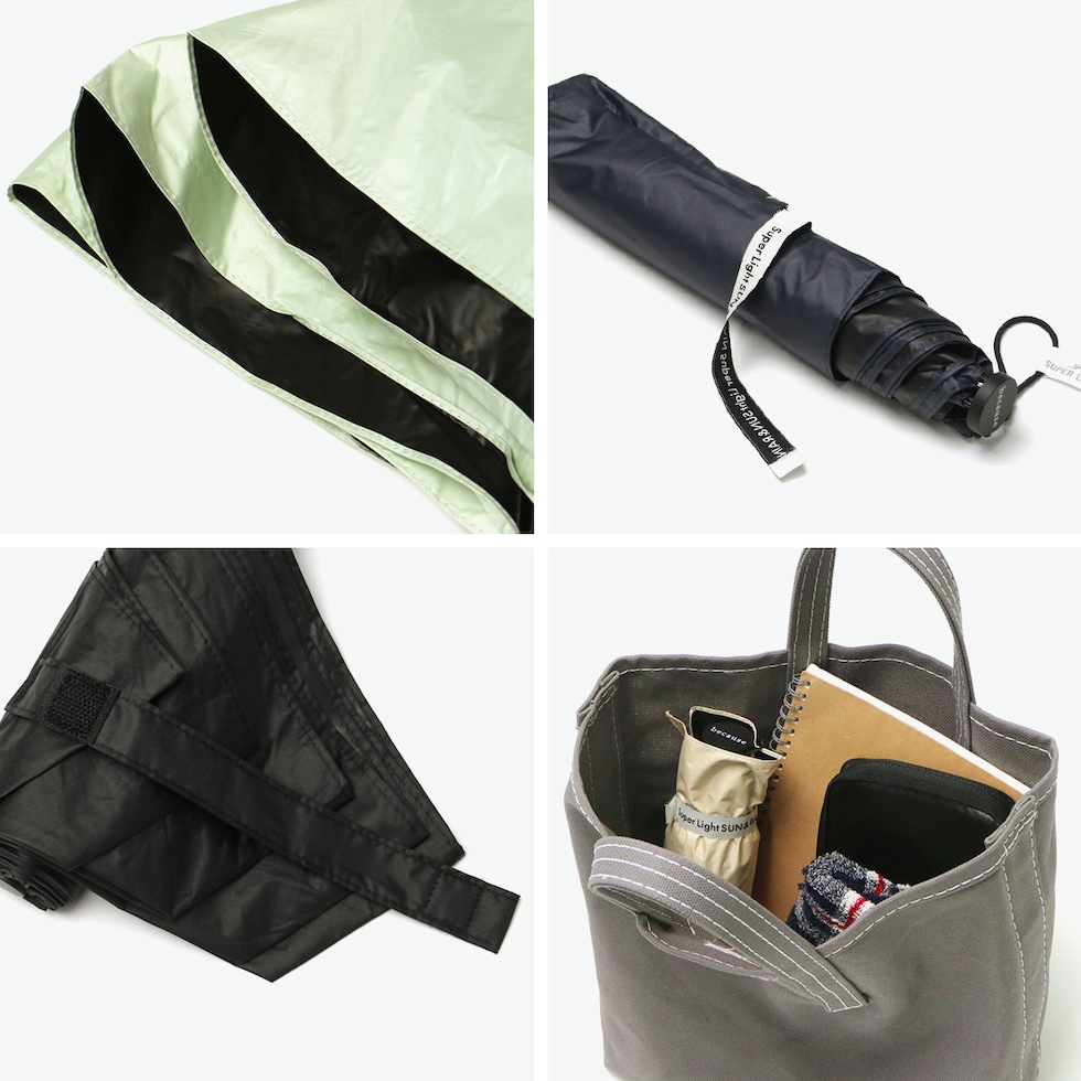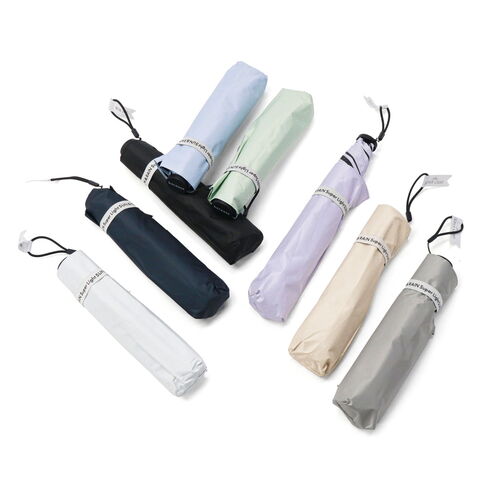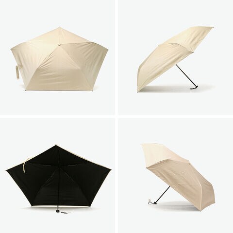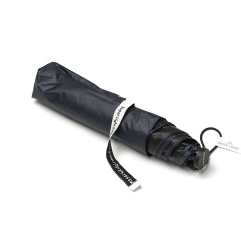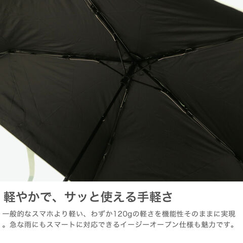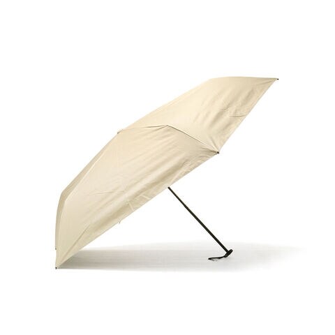 軽量タイプの折り畳み傘 ベーシックなデザインで、シーンを選ばすに使える折りたたみ傘。傘の骨は軽くて丈夫なカーボン素材を使用し、わずか120グラムと軽量なため持ち運びに便利です。紫外線遮蔽率・遮光率が100%と、日差しの強い暑い日でも涼しく過ごせて、晴雨兼用なのもポイント。収納袋に施されたさりげないネームが、大人っぽく落ち着いた印象を与えます。 |
