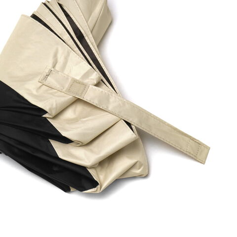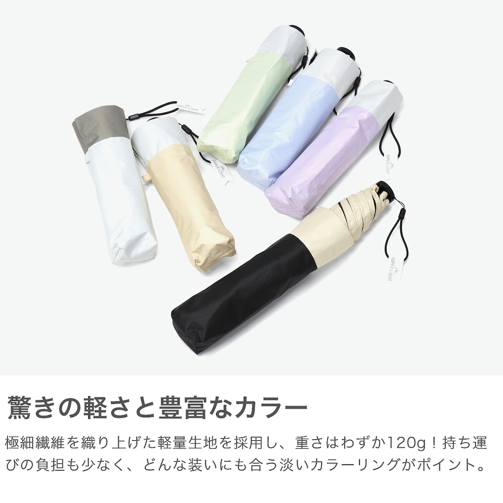 バイカラーがアクセント バイカラーがお洒落なアクセントになった折りたたみ傘。傘の骨は軽くて丈夫なカーボン素材を使用し、120gと軽量かつスリムなフォルムで、カバンに入れてもかさばりません。晴雨兼用で、紫外線遮蔽率・遮光率が99.9%以上カットしてくれる頼もしさがポイント。無駄な装飾がないナチュラルなデザインで、大人のセンスが光るアイテムです。 |