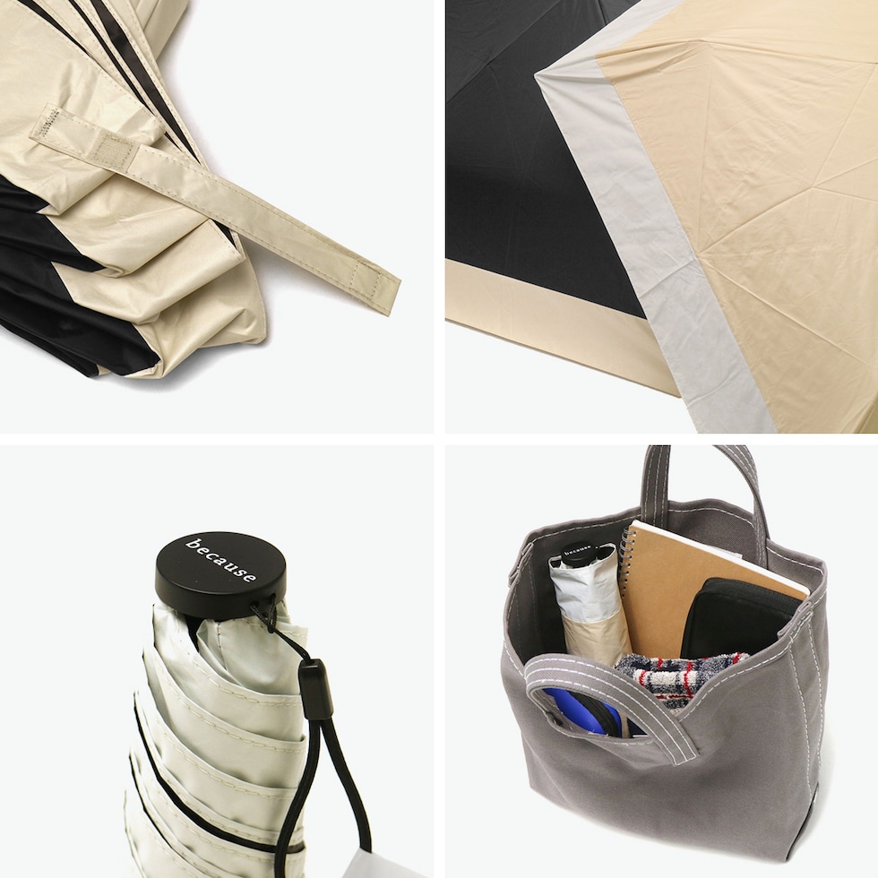 【メール便】 because 折りたたみ傘 傘 日傘 折りたたみ 軽量 コンパクト 晴雨兼用 ビコーズ レディース ブランド ケース付き UVカット 遮熱 内側 黒 おしゃれ 紫外線対策 親骨50cm 遮光 Super Light Bicolor Mini B-093948