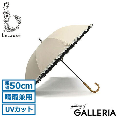 because 傘 レディース 50cm ビコーズ 日傘 雨 かさ UVカット 完全遮光 遮光 遮熱 晴雨兼用 軽量 軽い 手開き 長傘 遮光率100% 手動 かわいい フリル 紫外線対策 PUバイカラーフリル B-938235