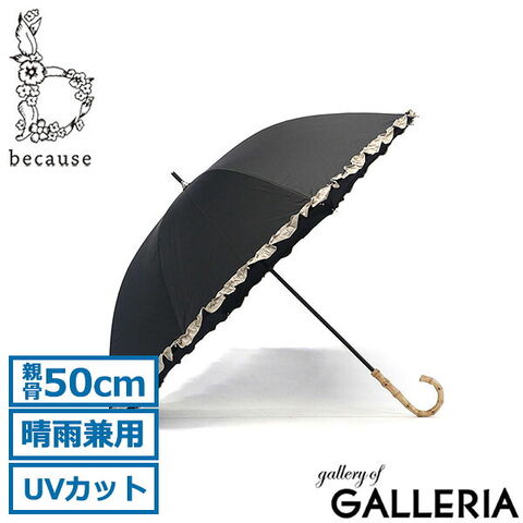 because 傘 レディース 50cm ビコーズ 日傘 雨 かさ UVカット 完全遮光 遮光 遮熱 晴雨兼用 軽量 軽い 手開き 長傘 遮光率100% 手動 かわいい フリル 紫外線対策 PUバイカラーフリル B-938235