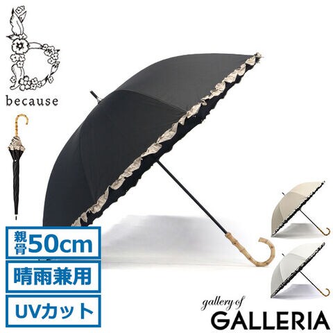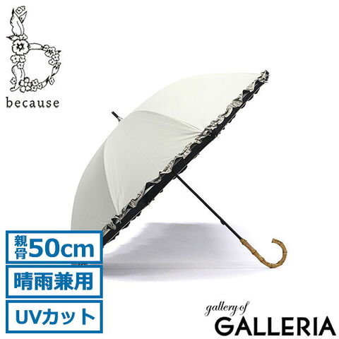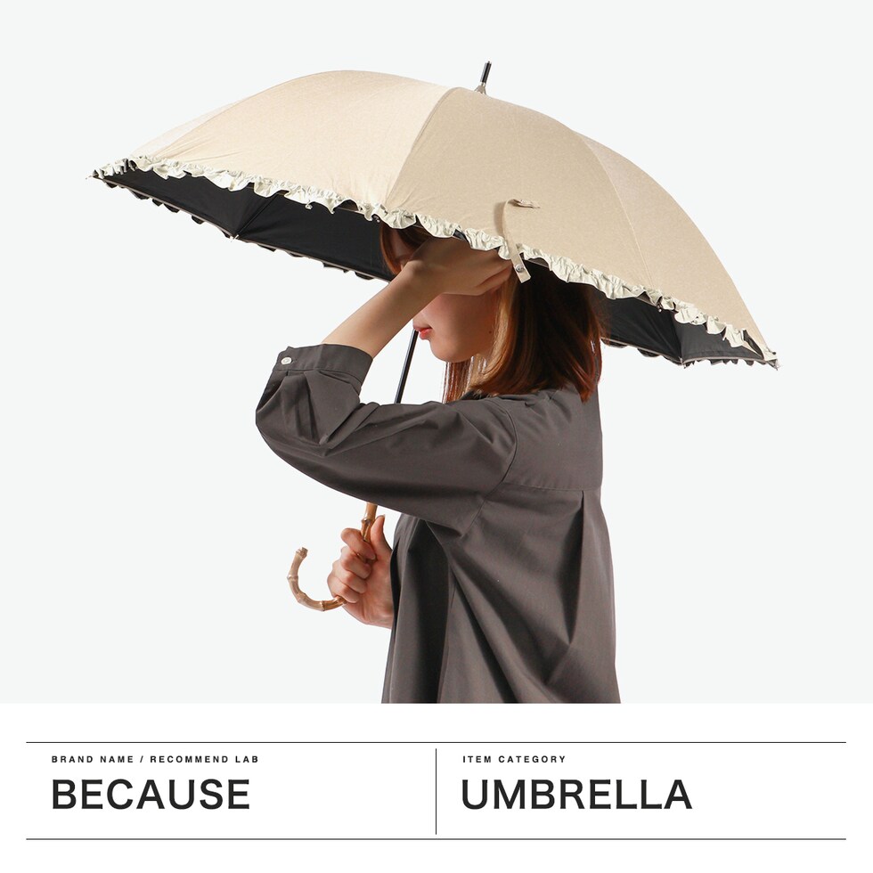because 傘 レディース 50cm ビコーズ 日傘 雨 かさ UVカット 完全遮光 遮光 遮熱 晴雨兼用 軽量 軽い 手開き 長傘 遮光率100% 手動 かわいい フリル 紫外線対策 PUバイカラーフリル B-938235