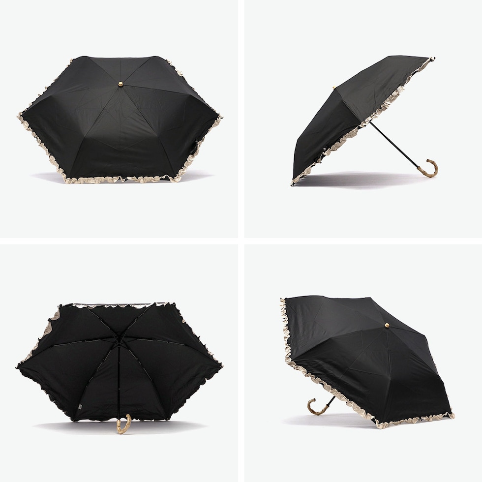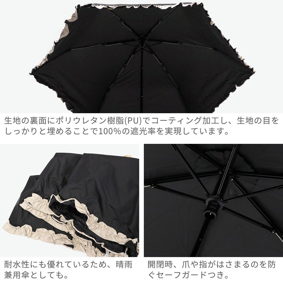 because 折りたたみ傘 晴雨兼用 軽量 ブランド ビコーズ 傘 日傘 折りたたみ レディース コンパクト 裏面黒 UVカット 遮光 遮熱 手動 無地 シンプル フリル 可愛い 上品 PUバイカラーフリル ミニ B-093835
