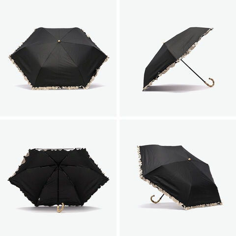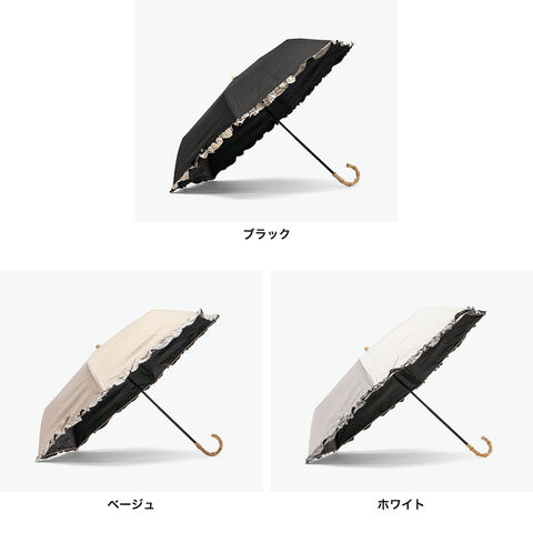 大人可愛く紫外線対策 大人可愛いデザインが魅力の晴雨兼用折りたたみ傘。裏面黒コーティングでUVカット率・遮光率100%を実現し、日差しをしっかりブロック。軽量&コンパクト設計で持ち運びも楽々。バンブーハンドルが上品なアクセントに。シンプルな無地にバイカラーフリルをあしらい、フェミニンな印象を演出します。通勤やお出かけにぴったりのアイテムです。 |