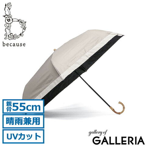 because 折りたたみ傘 レディース 晴雨兼用 大きい ビコーズ 傘 日傘 軽量 完全遮光 UVカット率100% 紫外線対策 遮熱 おしゃれ かわいい シンプル バンブーハンドル 手動 55cm PUグログラン ラージ トートバッグ ミニ B-095812