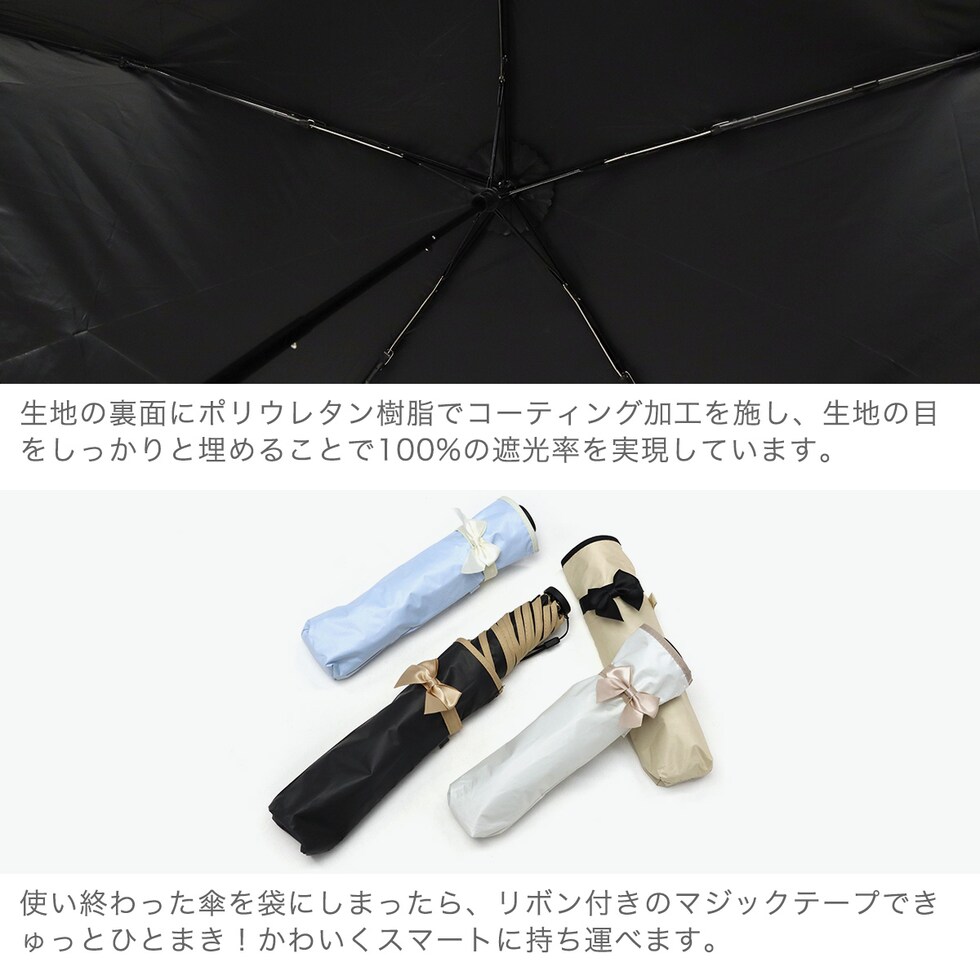 【メール便】 because 折りたたみ傘 晴雨兼用 軽量 レディース ビコーズ 傘 日傘 折りたたみ 雨 コンパクト UVカット 完全遮光 遮光 遮熱 遮光率100% 50cm 折り畳み傘 手動 PUスーパーライト リボン ミニ B-095934