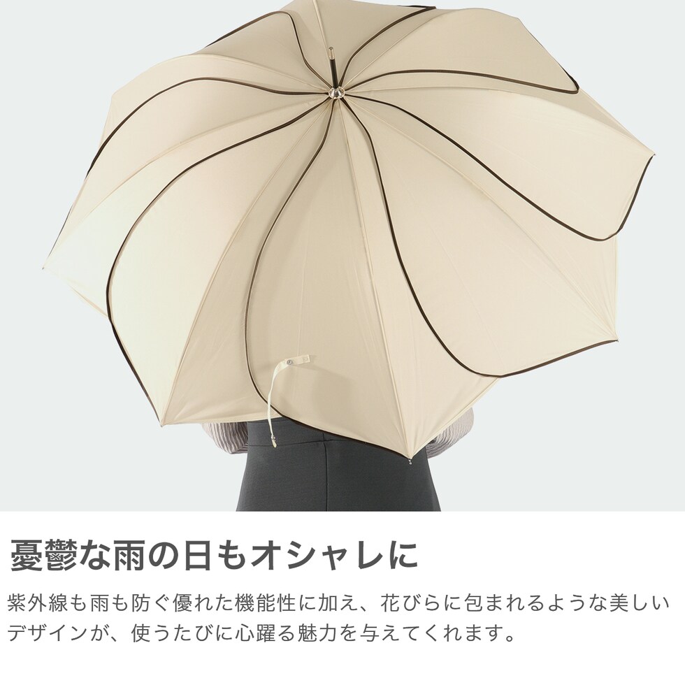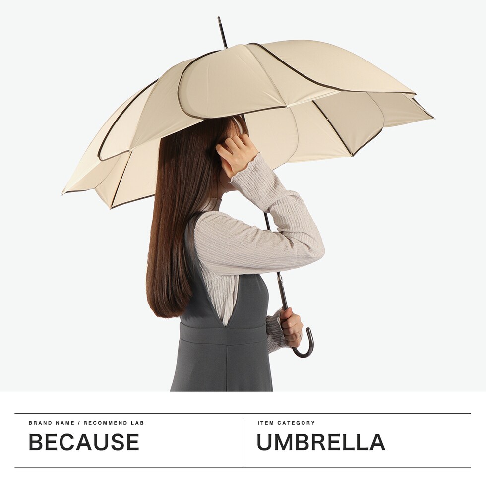 ビコーズ 傘 レディース because 軽い ブランド 長傘 晴雨兼用 雨傘 日傘 無地 UVカット 紫外線対策 おしゃれ かわいい シンプル 花びら 花 Bicolor Piping バイカラーパイピング フラワーアンブレラ B-133200
